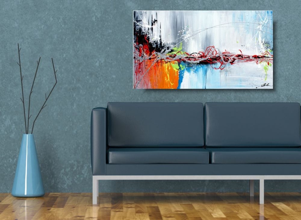 Obraz do biura abstrakcja „Kolory dzieciństwa” obrazy nowoczesne na płótnie 1042A w dużym formacie, pełen pozytywnej energii w żywej kolorystyce. Obraz nowoczesny jest niekonwencjonalny pod względem formalnym jak i warsztatowym. Do namalowania tego obrazu użyto całej palety barw, co daje efekt nowoczesnego designu. Obraz może ożywić modne jednobarwne wnętrze – salon, biuro, korytarz. W tej chwili są modne wnętrza monochromatyczne, minimalistyczne w których obraz to jedyne źródło koloru. Na specjalne życzenie Klientów wykonujemy także obrazy na zamówienie. Zapraszamy do bezpłatnej konsultacji mailowej sklep@dobrasztuka.pl Bardzo chętnie pomożemy w doborze odpowiedniego obrazu do wnętrza.