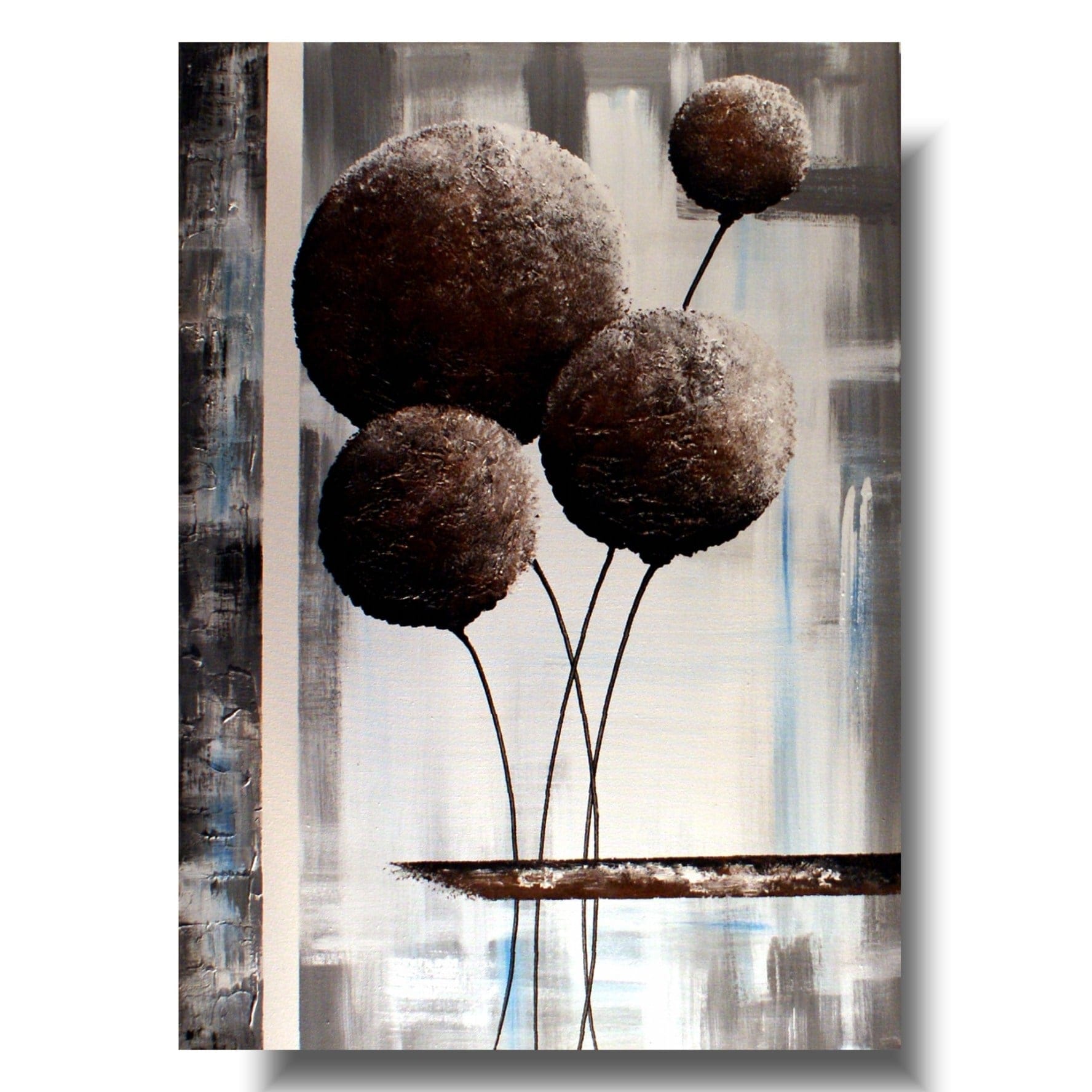 Dmuchawce obraz z kwiatami w eleganckiej, stonowanej kolorystyce. Idealnie pasuje do modnego wnętrza – salonu, sypialni, przedpokoju czy biura. Oprócz standardowych farb używamy często zaskakujących technik oraz tworzyw malarskich. Posiadamy wiele modnych wzorów oraz klasycznych motywów. Gdyby jednak zamarzyło się Państwu coś zupełnie odmiennego – malujemy obrazy na zamówienie, portret na zamówienie, obrazy sakralne, komplety obrazów, obrazy kwiaty, obrazy abstrakcje, obrazy postacie.