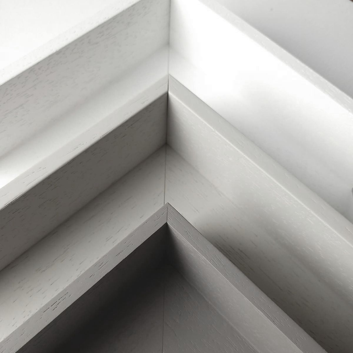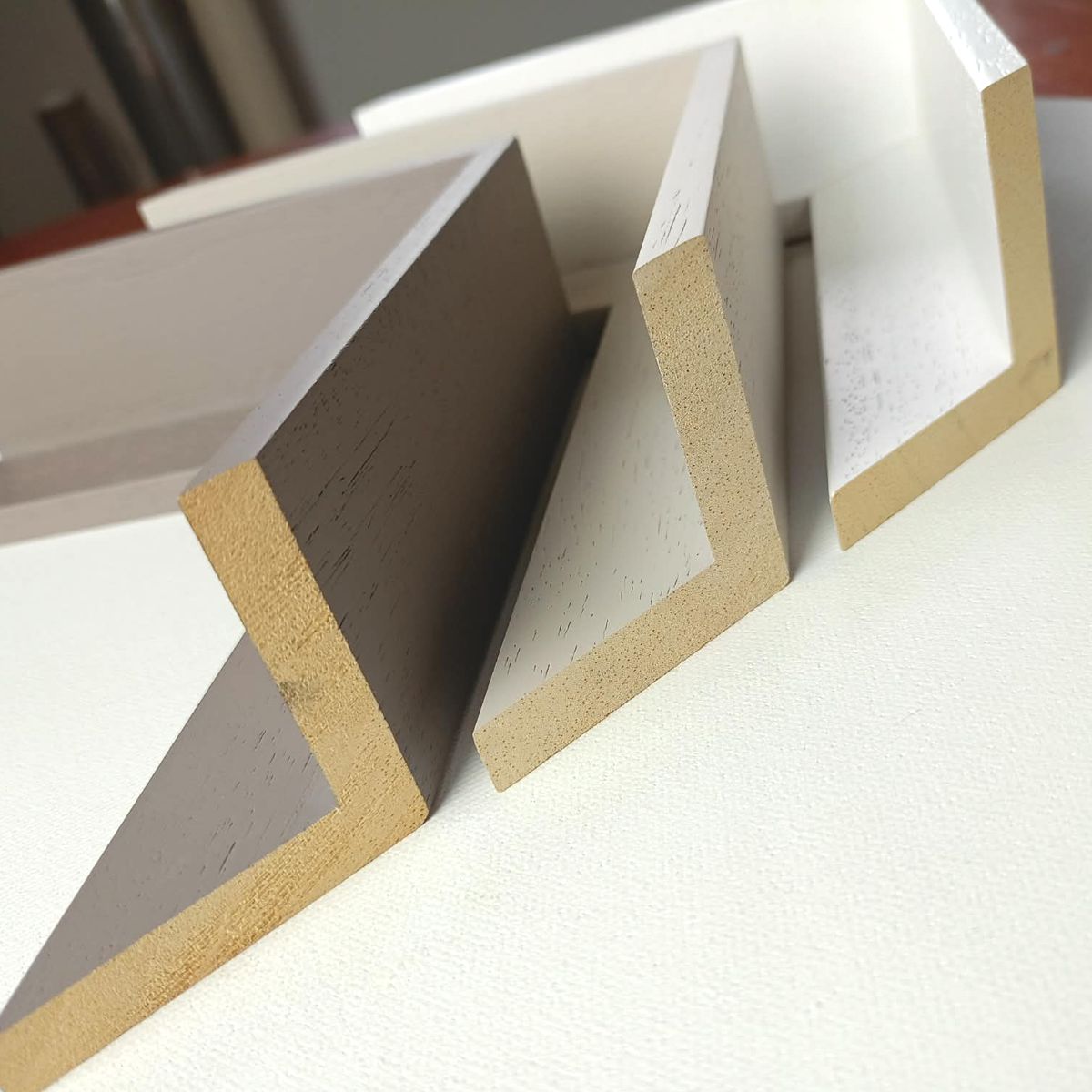 Drewniana rama american box do obrazu rama pudełkowa (AP28)– Rama pudełkowa drewniana w kolorze białym, jasno szarym i ciemno szarym, z widoczną strukturą drewna. Rama drewniana malowana.