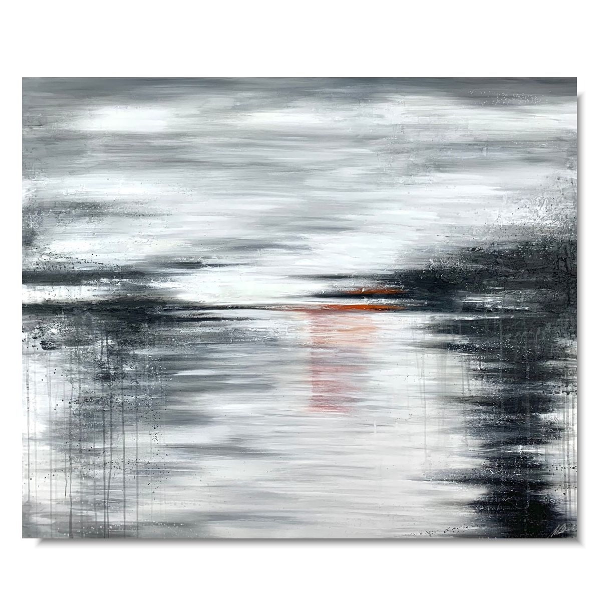 Duża elegancka abstrakcja „Odbicie” naszego autorstwa to niekonwencjonalne dzieło pod względem formalnym jaki i warsztatowym. Tworzymy modne obrazy w dużym formacie aby mogły ozdobić nowoczesny salon czy zaciszną sypialnię. Kolekcje obrazów nawiązują do klasycznych wzorców i najnowszych trendów. Mamy w swojej ofercie obrazy jednoczęściowe, jak i obrazy dzielone na kilka części – takie jak dyptyk, tryptyk. Możemy namalować każdy obraz w zmienionym wymiarze i w innej kolorystyce.