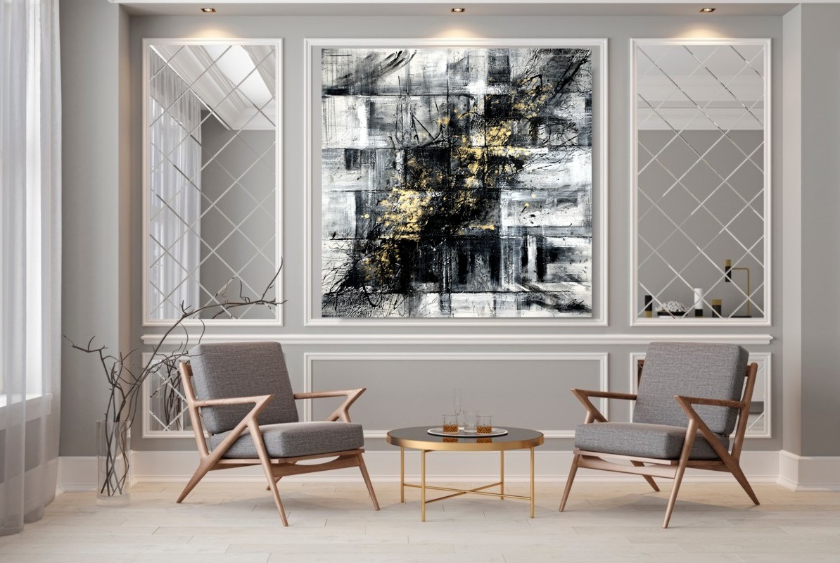 Duży obraz abstrakcja kwadratowa „Milenium” do salonu 2000A to obraz w którym można odkryć fizyczną wręcz obecność pędzla – materia farby staje się tu niemal żywa. Połączenie kierunków pionowych i poziomych w dziele nadaje mu ładu, harmonii i równowagi. Inspiracją wspomnianej harmonii stała się twórczość holenderskiego malarza, przedstawiciela neoplastycyzmu – Piet’a Mondrian’a. Duży obraz abstrakcja kwadratowa to ogromny kwadratowy obraz z naszej autorskiej kolekcji dotknięty złotymi muśnięciami. Kolory użytej farby akrylowej dodają lekkości i elegancji. Idealnie ozdobi duży nowoczesny salon czy modne biuro. Wykonujemy obrazy marynistyczne, obrazy kwiaty, obrazy aniołów, obrazy dzielone – dyptyk, tryptyk, fortyk, obrazy jednoczęściowe w dużym formacie. Możemy namalować każdy obraz z naszej oferty w zmienionych wymiarach lub kolorystyce, możemy namalować obraz dzielony na jednej części lub obraz jednoczęściowy podzielić na kilka części. Możemy także dostosować kolorystykę do wnętrza – zmiany prezentujemy na wizualizacji. Jesteśmy kreatywni i elastyczni dlatego zapraszamy do kontaktu mailowego sklep@dobraszttuka.pl