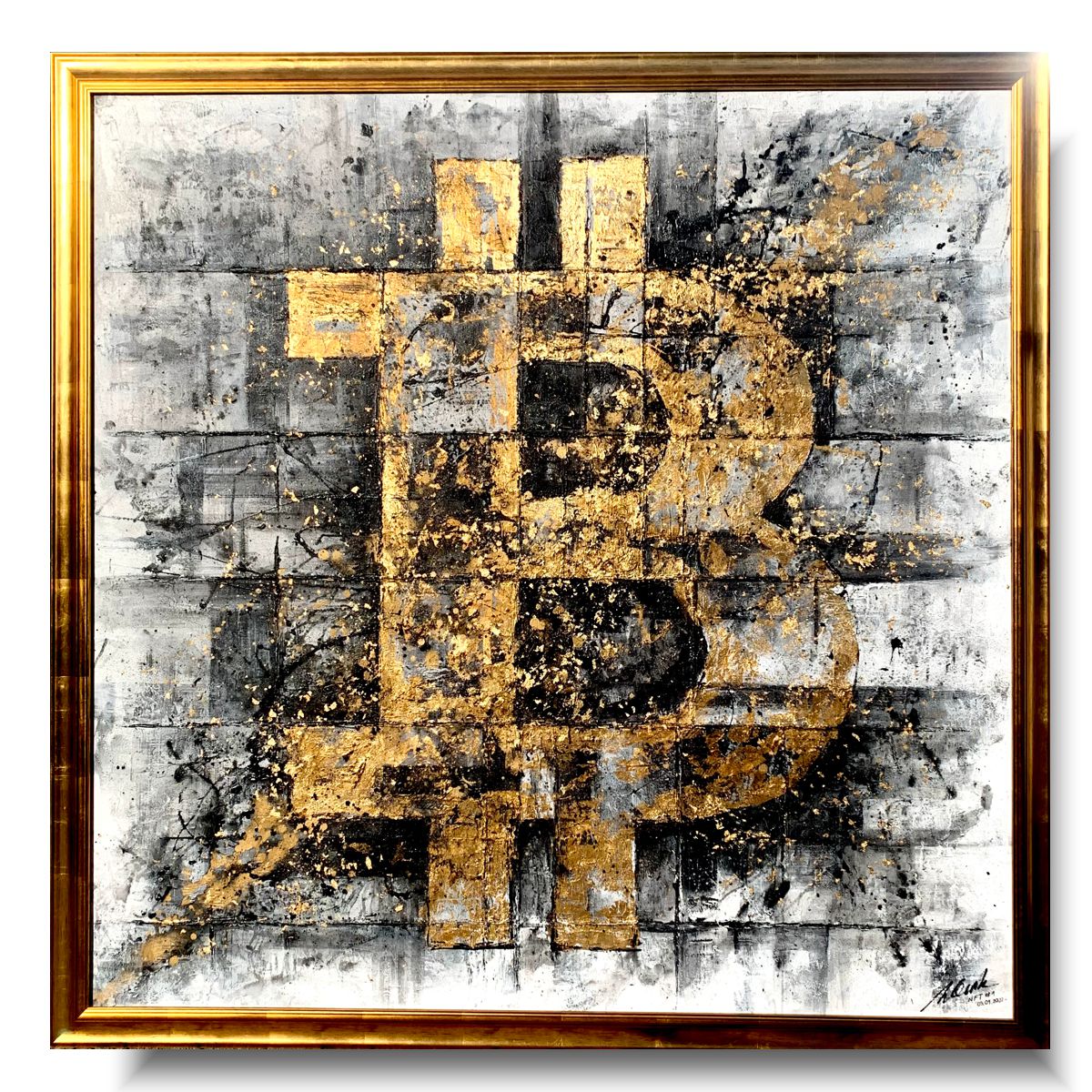 Duży obraz „Złoty bitcoin”. Duży obraz bitcoin abstrakcja w złotej ramie 2108A. Ten wyjątkowy obraz bitcoina to swojego rodzaju pamiątka inwestorów kryptowalutowych, którzy zarabiają pieniądze na tej cyfrowej walucie. Obraz z dużą ilością złota, jak przystało na lidera przestrzeni kryptograficznej, to nietypowa i unikatowa dekoracja ścienna. Obraz stworzony z myślą o fanach jak i pasjonatach kryptowalutowych. Jest swoistym artystycznym przedstawieniem graficznego logo i przywodzi na myśl powodzenie. Mówi się że bitcoin to złoto wśród walut cyfrowych, a nasze dzieło idealnie oddaje to stwierdzenie. Surowość tła oddana sprawia wrażenie prawdziwego muru zarazem złoto jest bardzo wyraziste i wybija się na tle całej kompozycji.