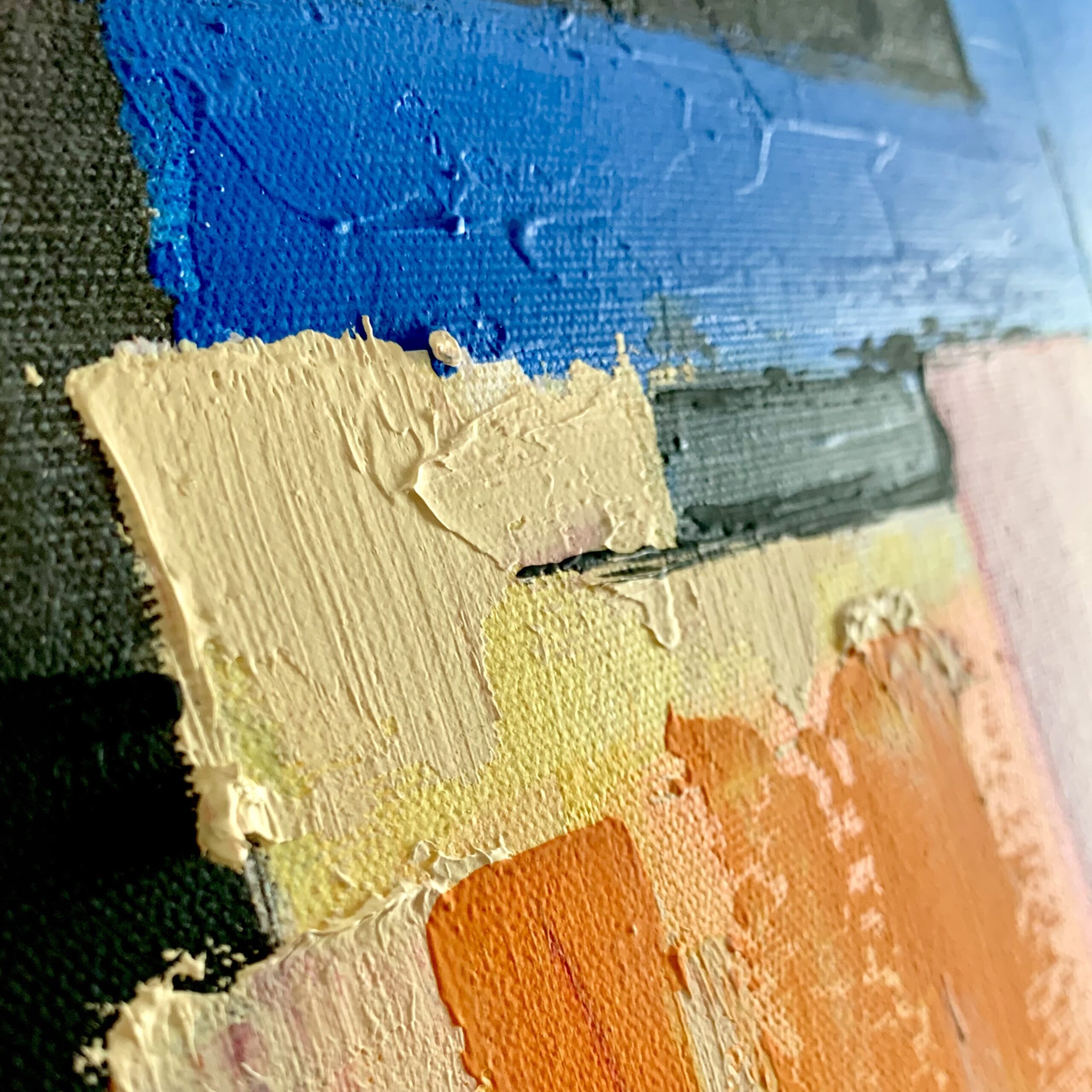 Kolorystyka obrazu: niebieski, turkusowy, czerwony, pomarańczowy, żółty, szary, biały, czarny,
