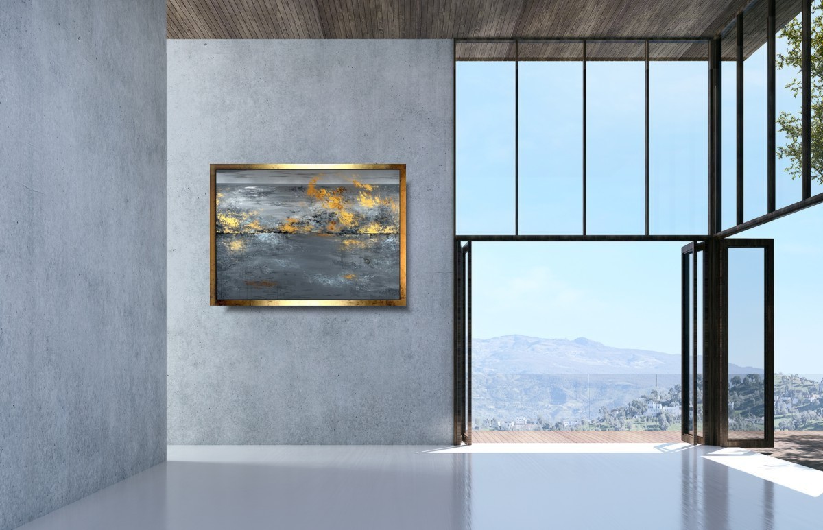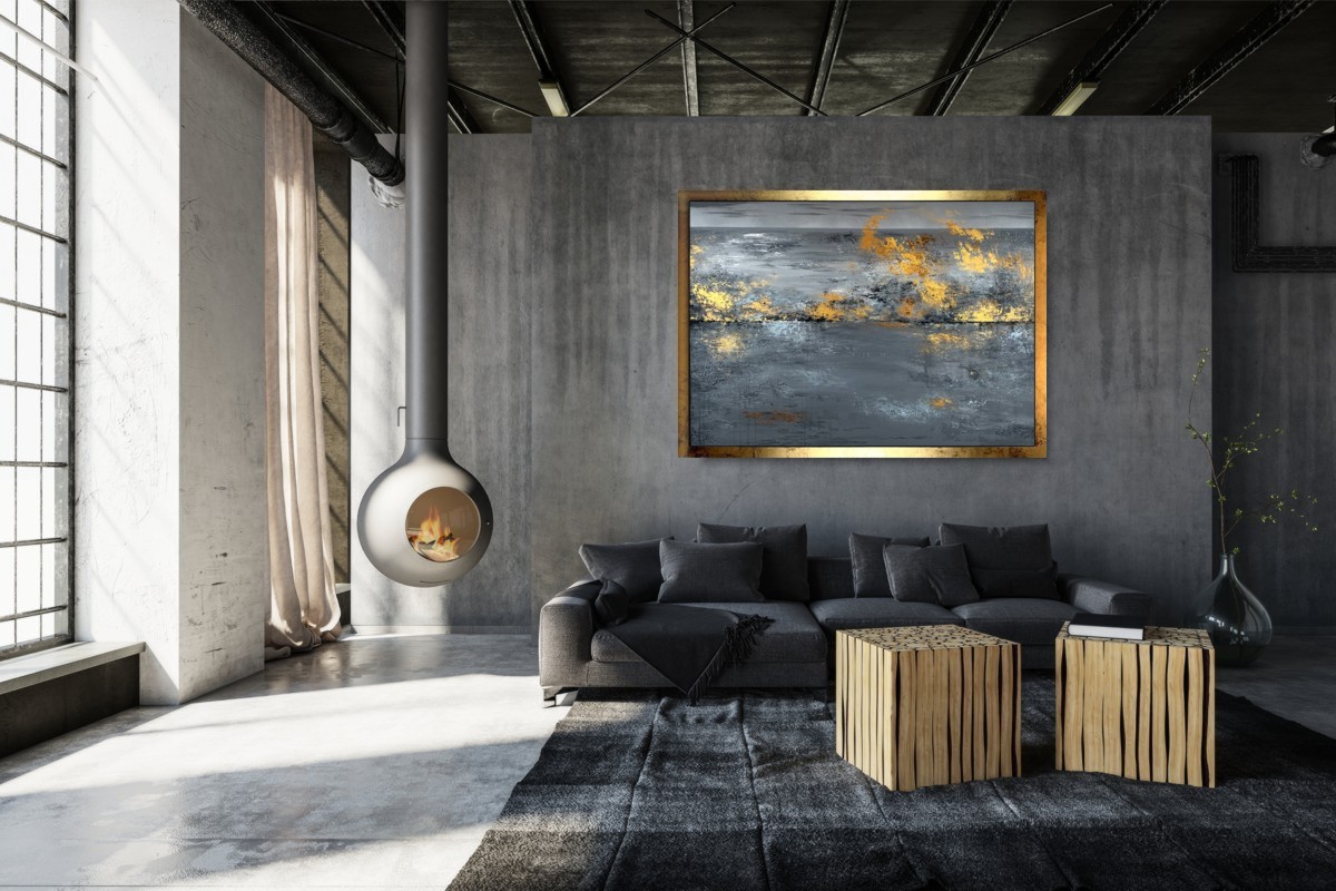 Duży szary obraz abstrakcja „Marzenie” składa się z 1 części + rama w komplecie (listwa szerokości 4cm)