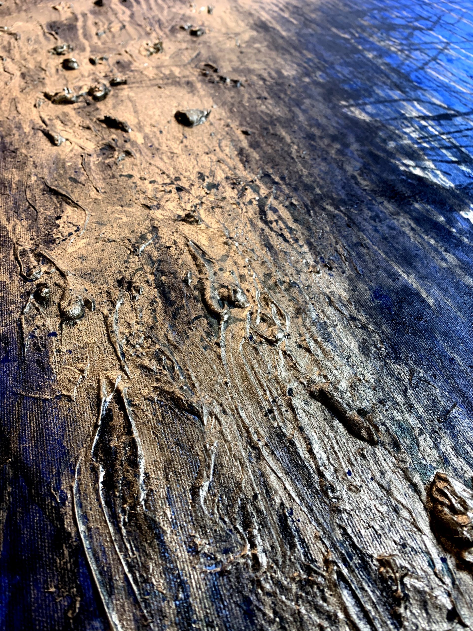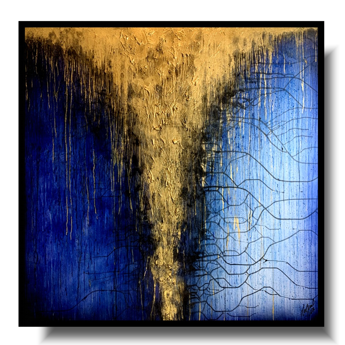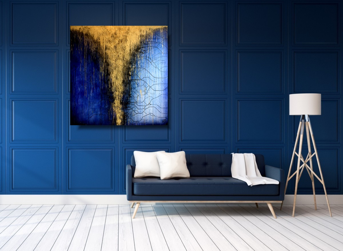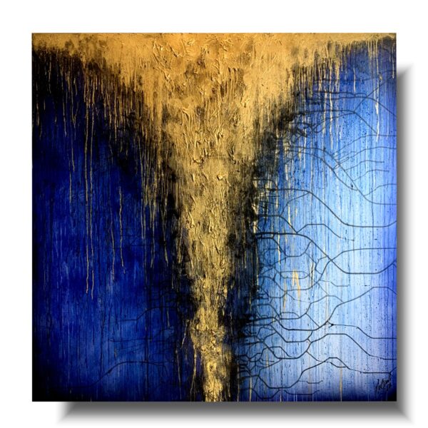 Granatowo złota abstrakcja strukturalna „Niebiański deszcz” składa się z 1 części.