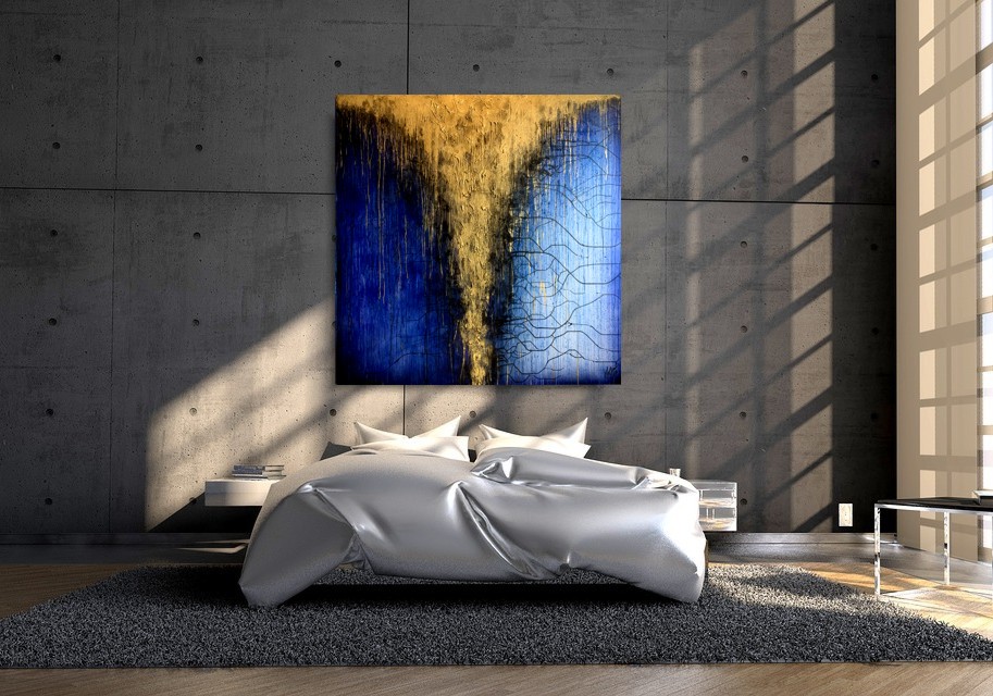 Obraz premium „Niebiański deszcz” to ogromny kwadratowy obraz naszego autorstwa w modnej, eleganckiej kolorystyce classic blue. Kolory użytej farby akrylowej dodają elegancji i splendoru. Obraz idealnie ozdobi dużą nowoczesną jadalnię czy modne biuro. Połączenie niebieskiego i złota jest duetem ponadczasowym dlatego gwarantujemy, że nie wyjdzie z mody.  Wykonujemy obrazy marynistyczne, obrazy kwiaty, obrazy aniołów, obrazy dzielone – dyptyk, tryptyk, fortyk, obrazy jednoczęściowe w dużym formacie. Możemy namalować każdy obraz z naszej oferty w zmienionych wymiarach lub kolorystyce, możemy namalować obraz dzielony na jednej części lub obraz jednoczęściowy podzielić na kolka części.