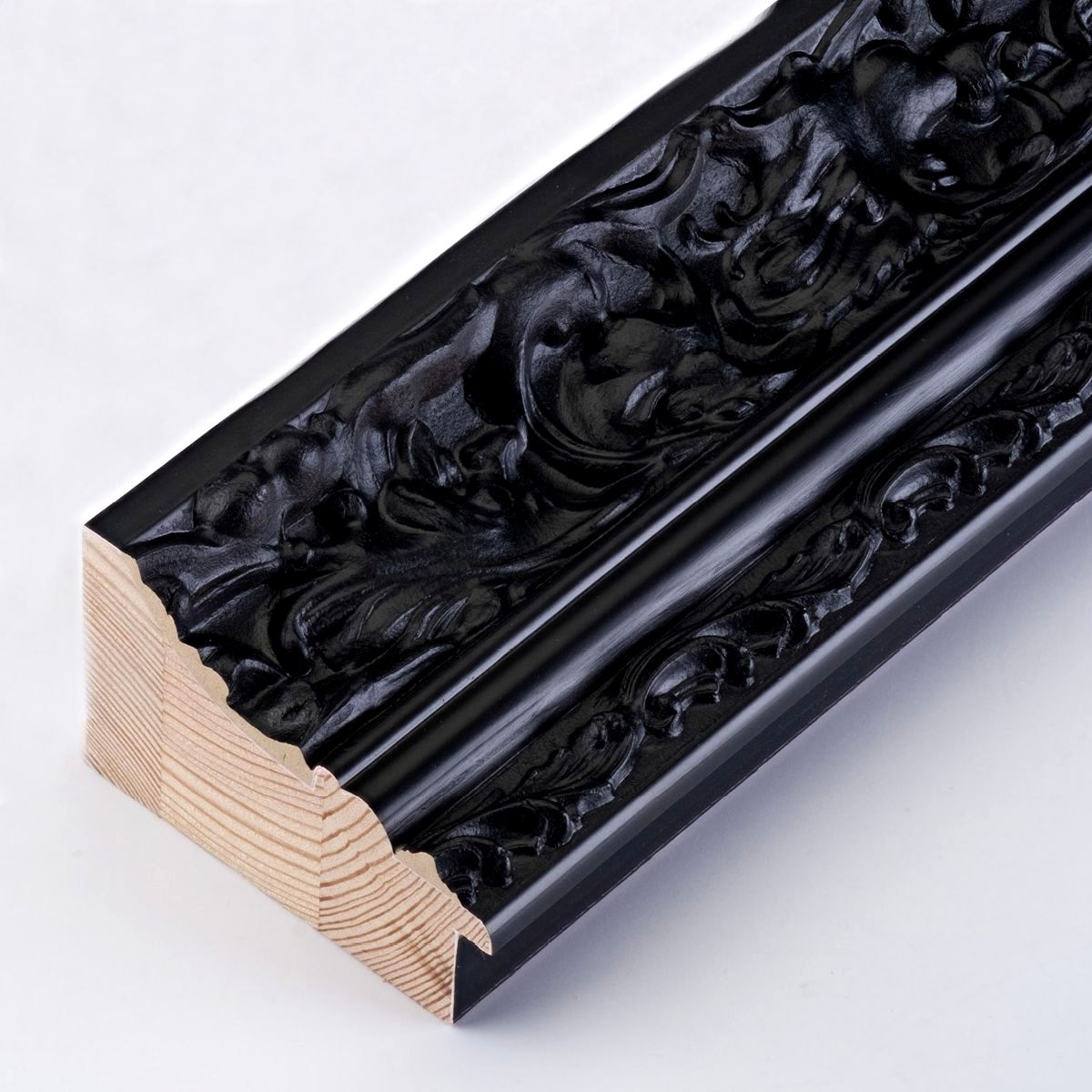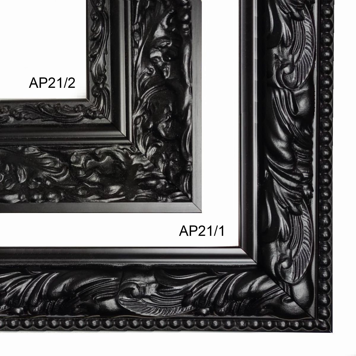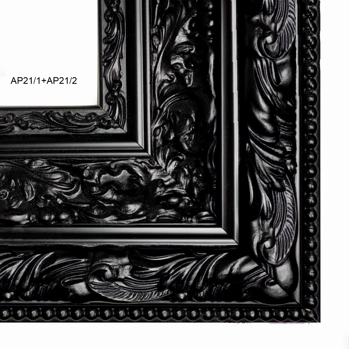 Klasyczna rama do obrazu szeroka ozdobna czarna satyna (AP21) – Doskonała rama do klasycznych obrazów jednocześnie idealna do nowoczesnych wnętrz i współczesnych obrazów. Dwie listwy można zakupić oddzielnie, a można z nich stworzyć bardzo szeroką ramę.