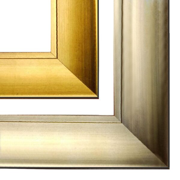 Klasyczna rama do obrazu (AP1)– Klasyczna rama w kolorze złotym lub srebrnym, niska przy obrazie i podniesiona na krawędziach, bez zdobień.