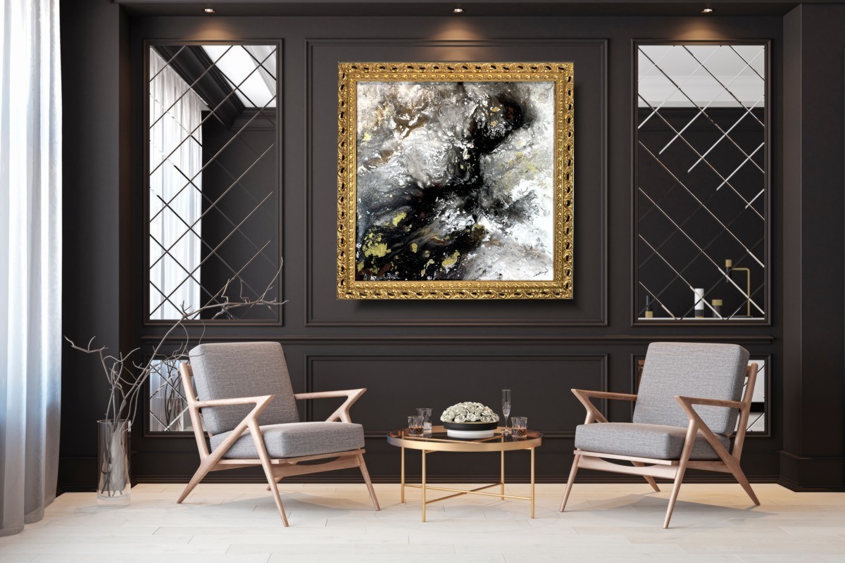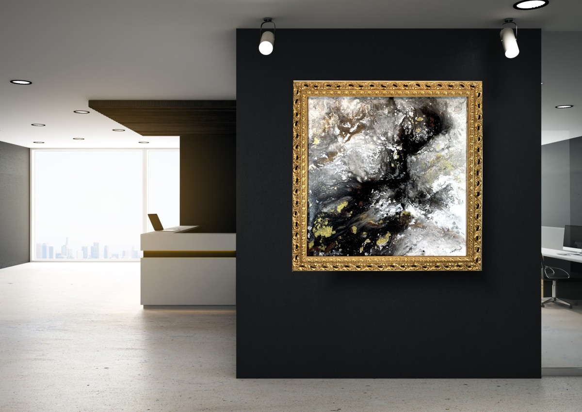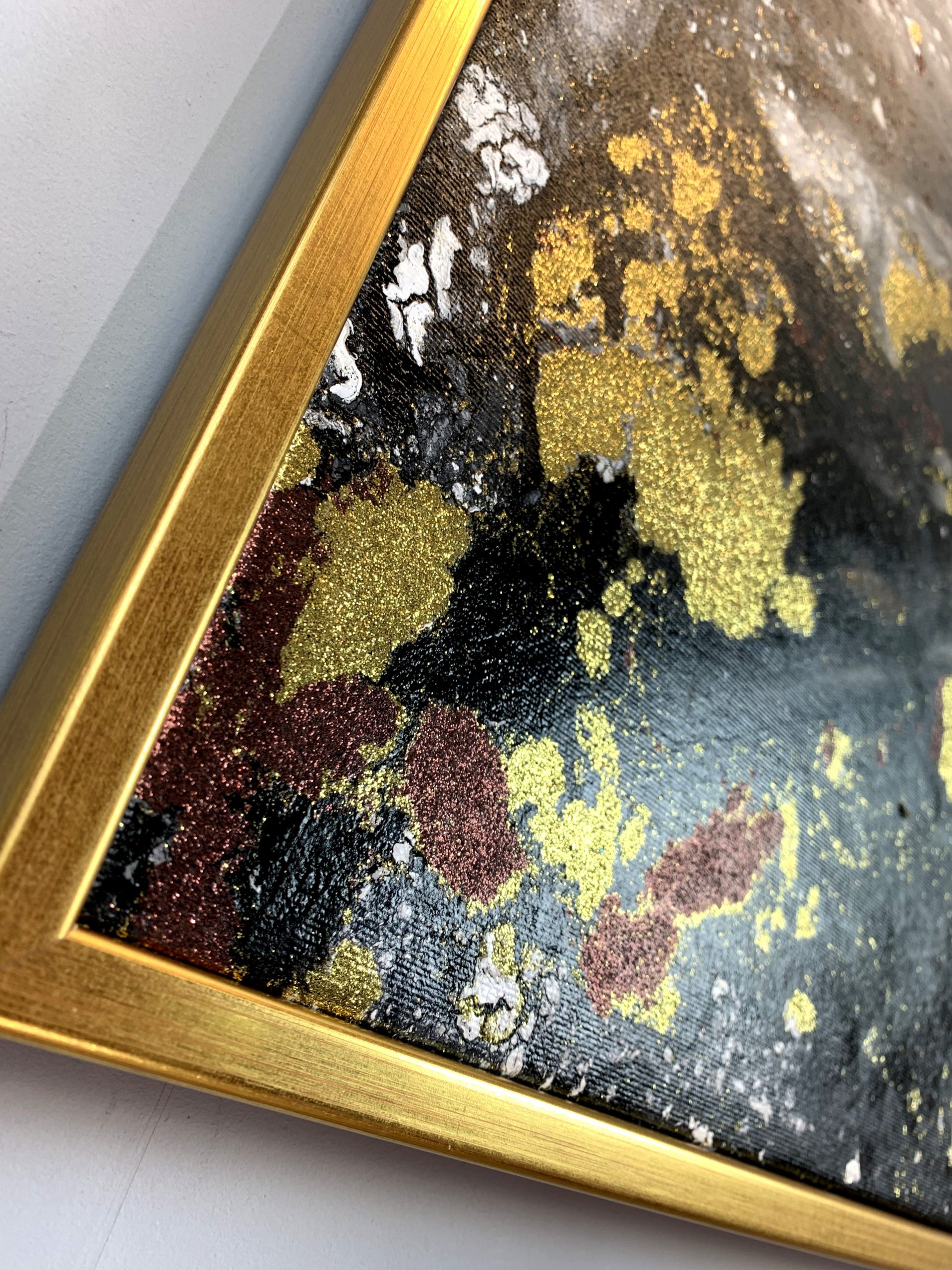 Kolekcja autorska abstrakcja złoty pył składa się z 1 części + rama (do wyboru) – stanowią komplet.