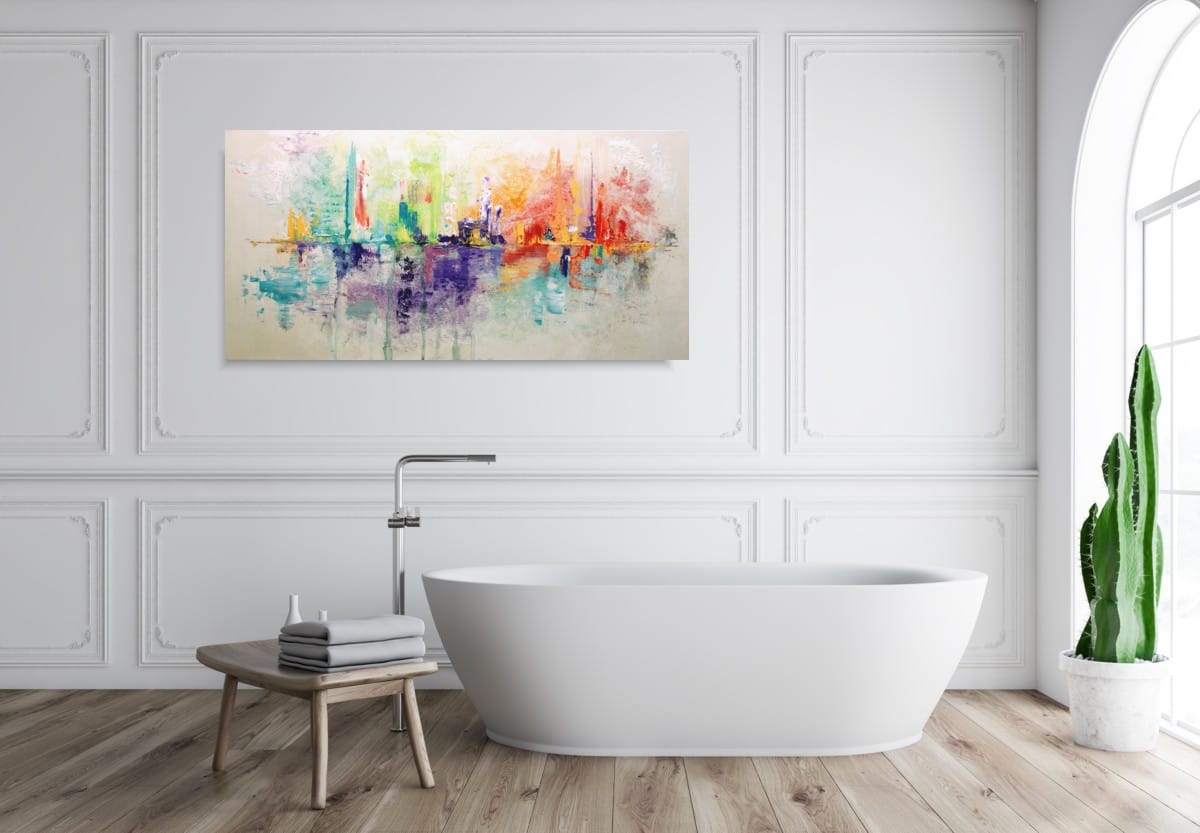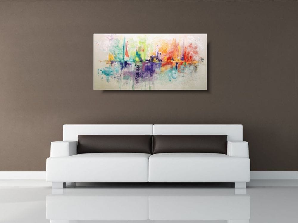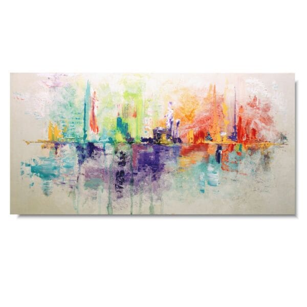 Kolorowa abstrakcja delikatna radość niekonwencjonalny pod względem formalnym jak i warsztatowym. Do namalowania tego obrazu użyto całej palety barw, co daje efekt nowoczesnego designu. Obraz może ożywić modne jednobarwne wnętrze – salon, biuro, korytarz. Na specjalne życzenie Klientów wykonujemy także obrazy na zamówienie – możemy namalować obraz z aniołami, obraz abstrakcyjny, obraz z kwiatami, obraz ze zwierzętami, obraz z postaciami.