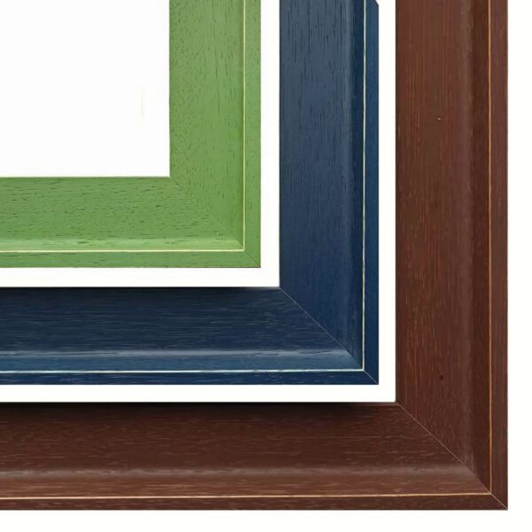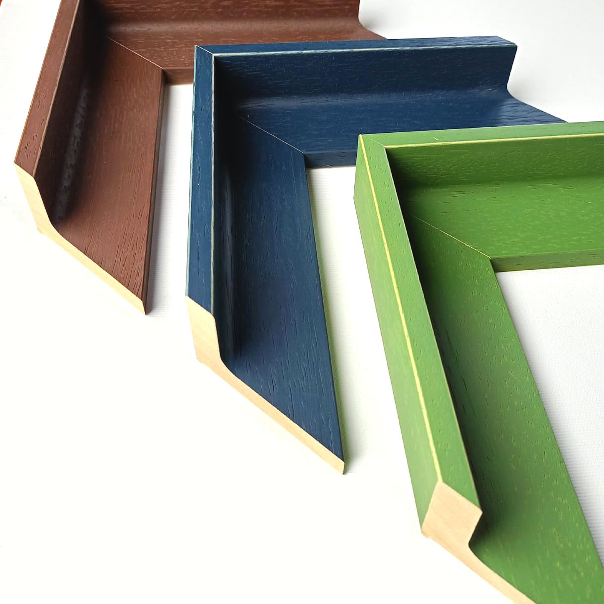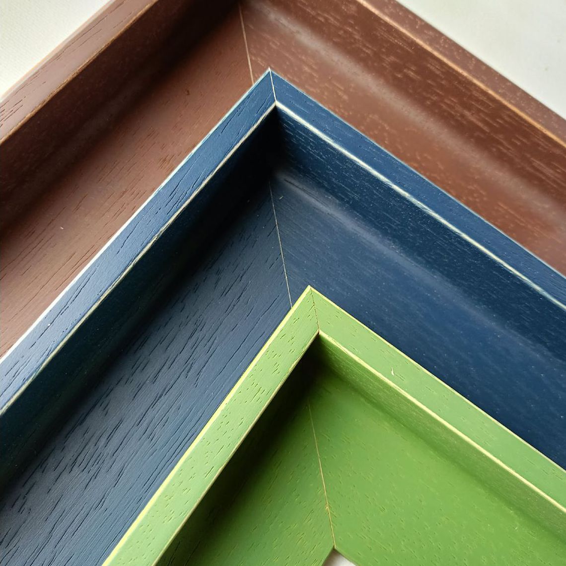 Kolorowa rama american box do obrazu rama pudełkowa (AP24)– Rama pudełkowa drewniana w kolorze zielonym, granatowym i brązowym, przecieranym, z widoczną strukturą drewna. Rama drewniana malowana.
