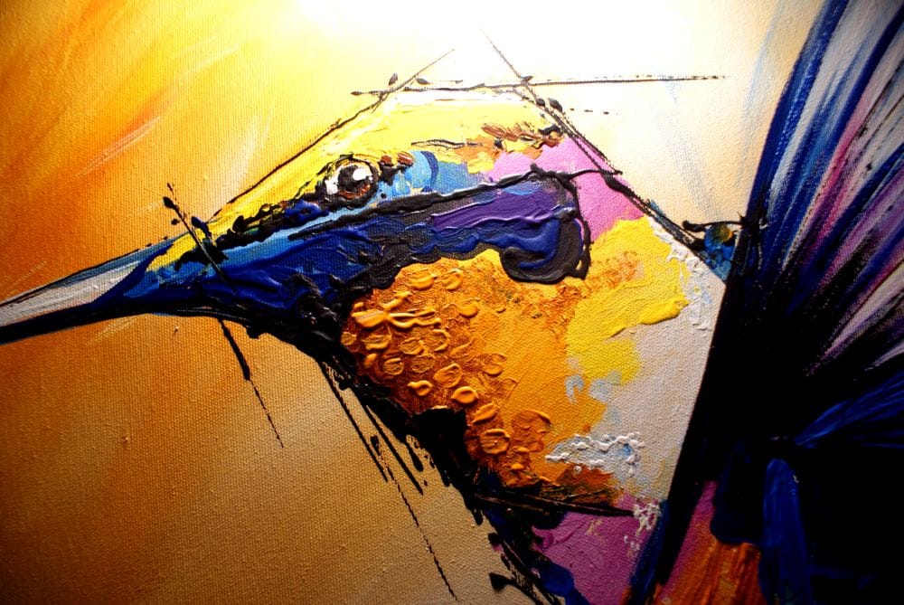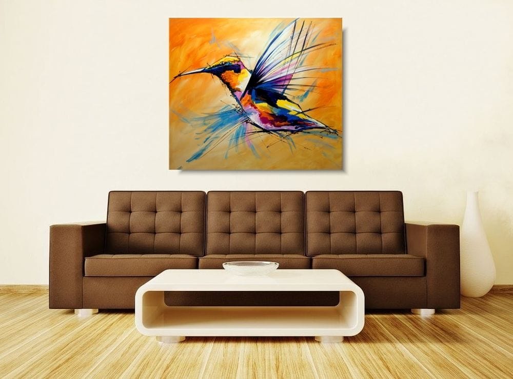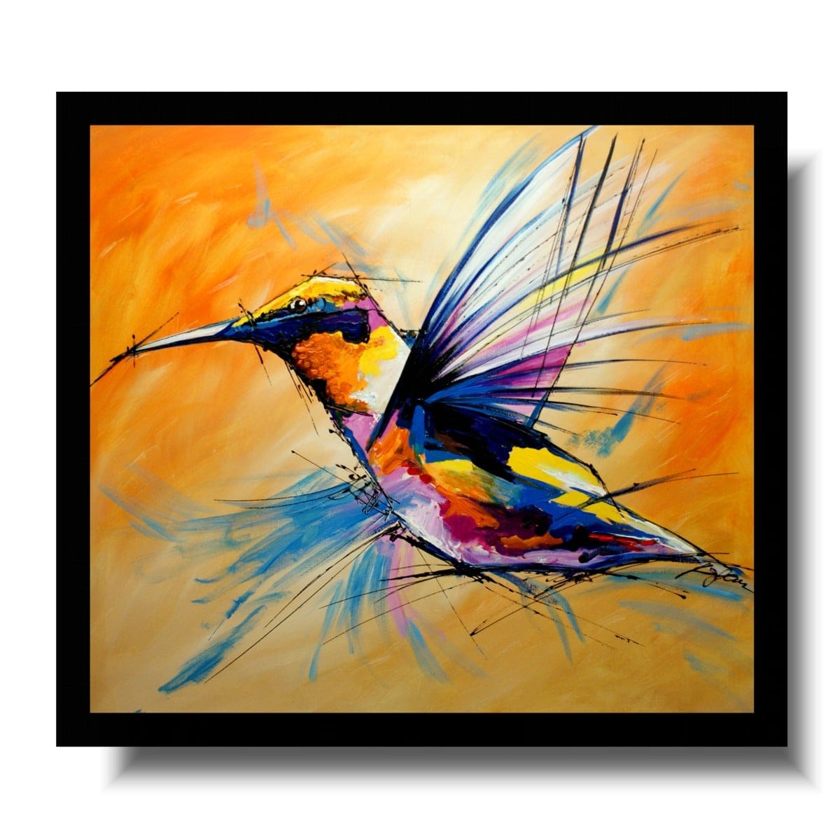 Obraz ręcznie malowany na płótnie „Egzotyczny ptak koliber” 1720A to obraz przedstawiający barwnego egzotycznego ptaka. Nasze duże, kolorowe obrazy doskonale prezentują się w monochromatycznych nowoczesnych wnętrzach – malujemy obrazy do gabinetu, obrazy do hotelu, obrazy do biura.