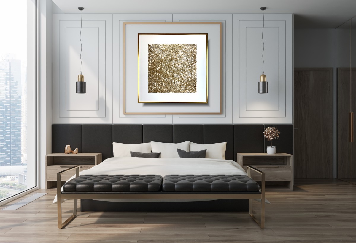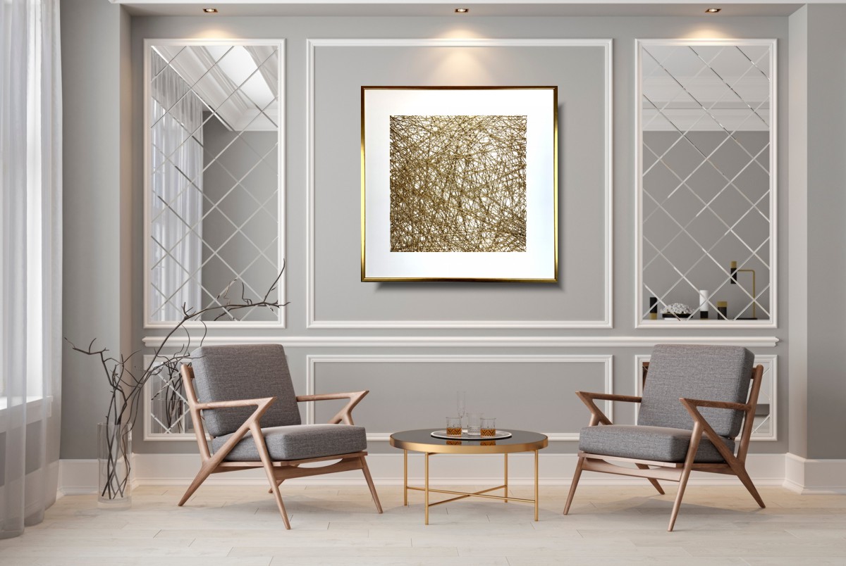 Abstrakcja do salonu „Złota sieć” obraz w ramie złotej 2191A