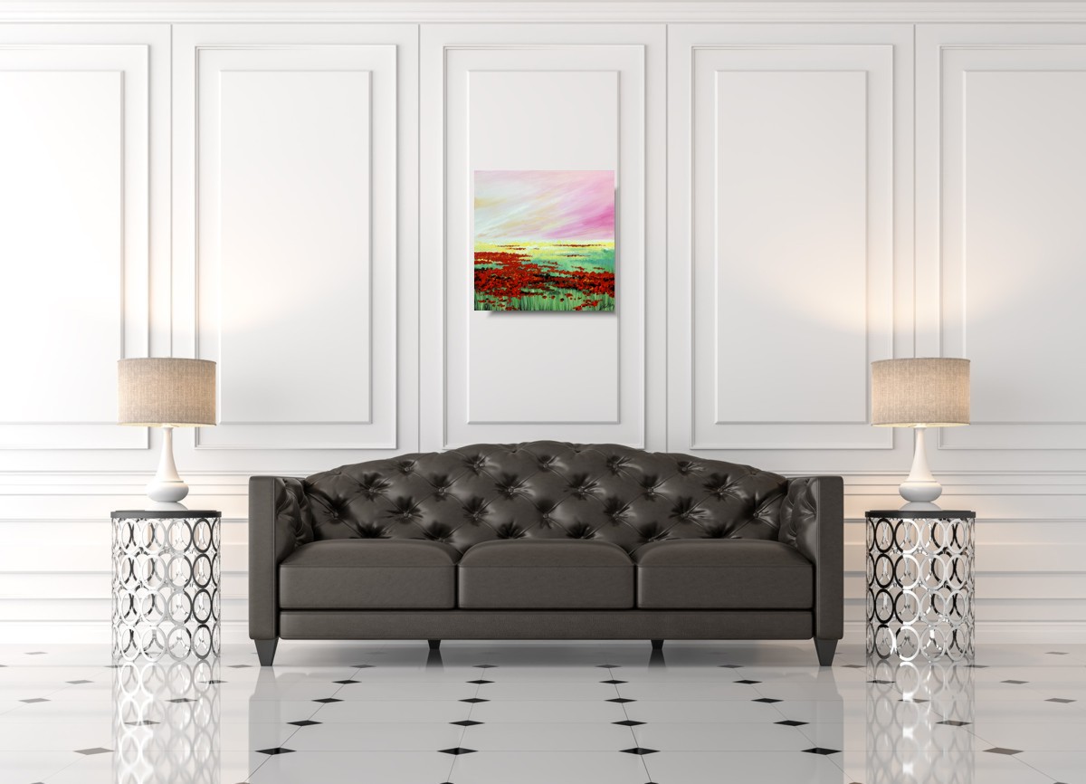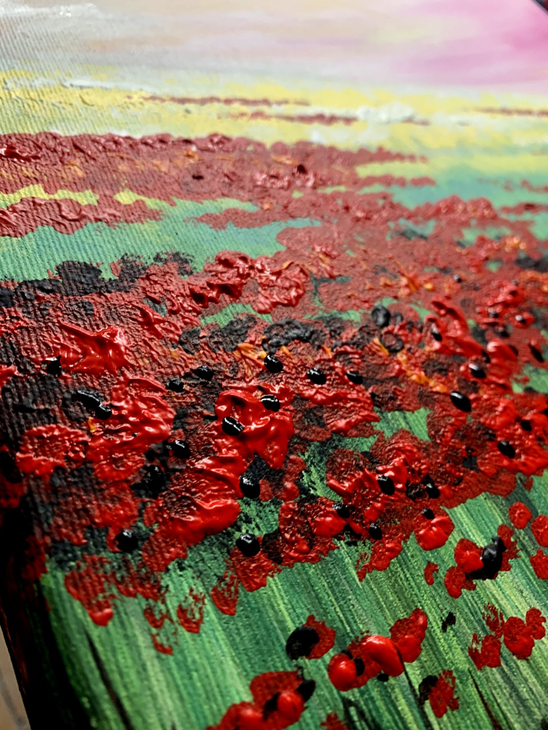 Mały obraz makowa łąka naszego autorstwa w letniej wesołej kolorystyce. Użyte farby akrylowe są w optymistycznych kolorach. Malutki obraz idealnie ozdobi niewielki salon czy biuro. Wykonujemy także obrazy marynistyczne, obrazy kwiaty, obrazy aniołów, obrazy dzielone – dyptyk, tryptyk, fortyk, obrazy jednoczęściowe w dużym formacie. Możemy namalować każdy obraz z naszej oferty w zmienionych wymiarach lub kolorystyce, możemy namalować obraz dzielony na jednej części lub obraz jednoczęściowy podzielić na kolka części.