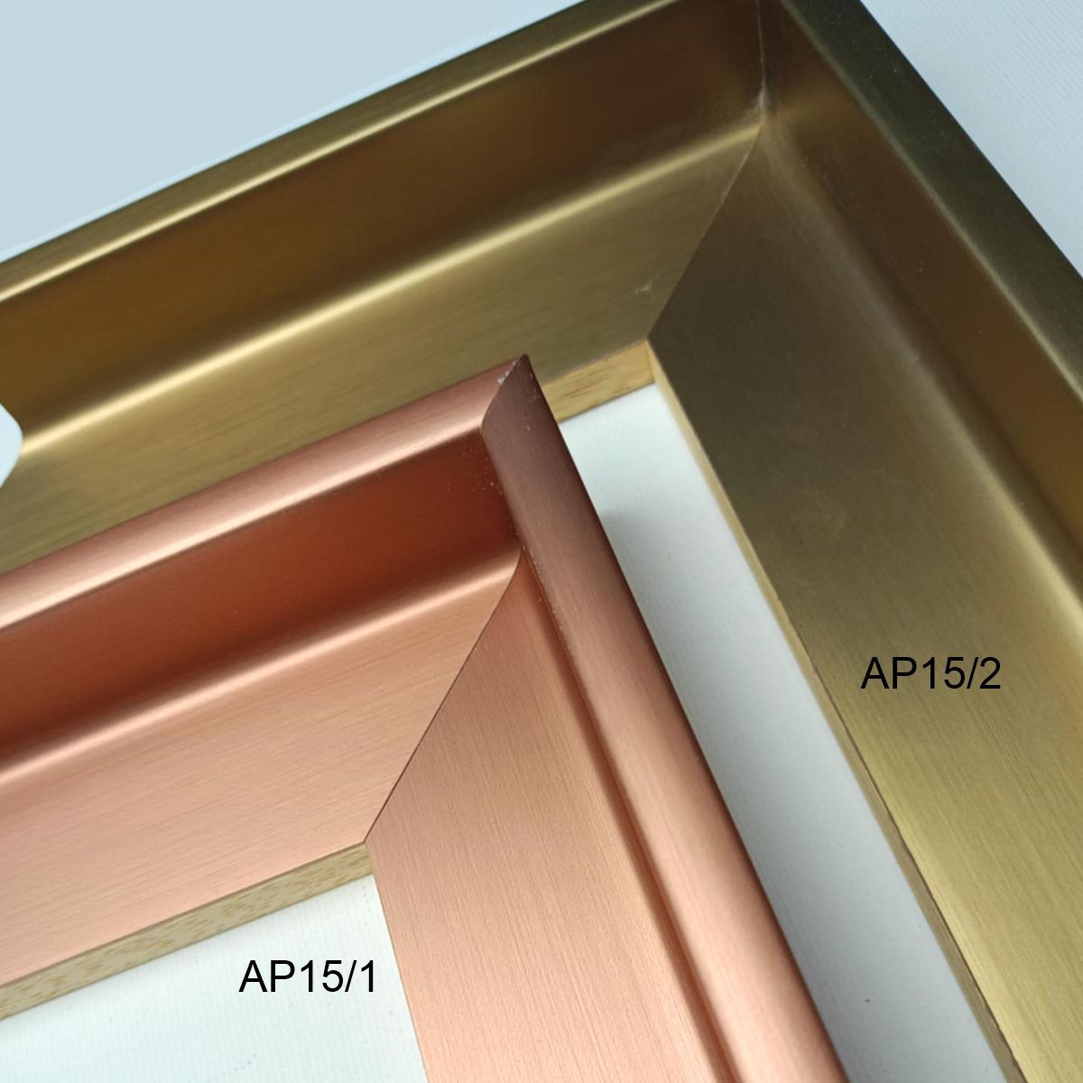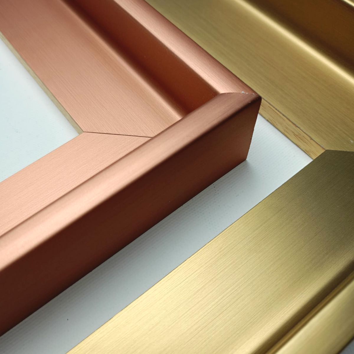 Miedziana i mosiężna rama american box do obrazu ramy pudełkowe (AP15)–  Rama pudełkowa drewniana w kolorze miedzianym szczotkowanym i mosiężnym szczotkowanym. Rama drewniana w okleinie.