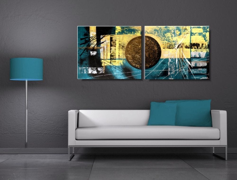 Modna abstrakcja obraz nowoczesny składa się z 2 części stanowiących komplet.