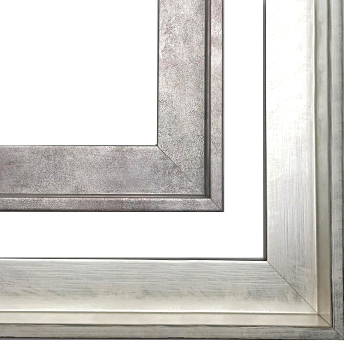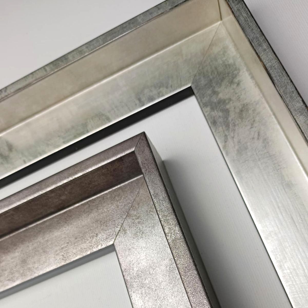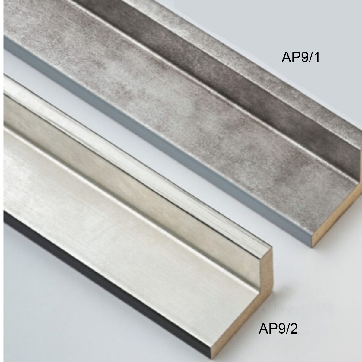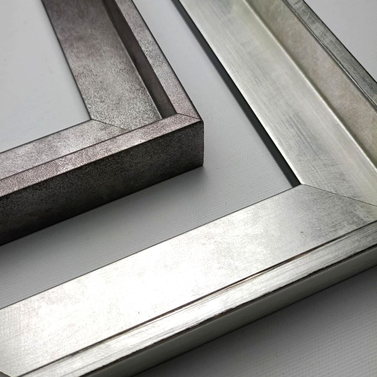 Nowoczesna rama american box do obrazu (AP9)–  Nowoczesna rama pudełkowa drewniana w kolorze srebrnym ala metal i srebrnym szczotkowanym.