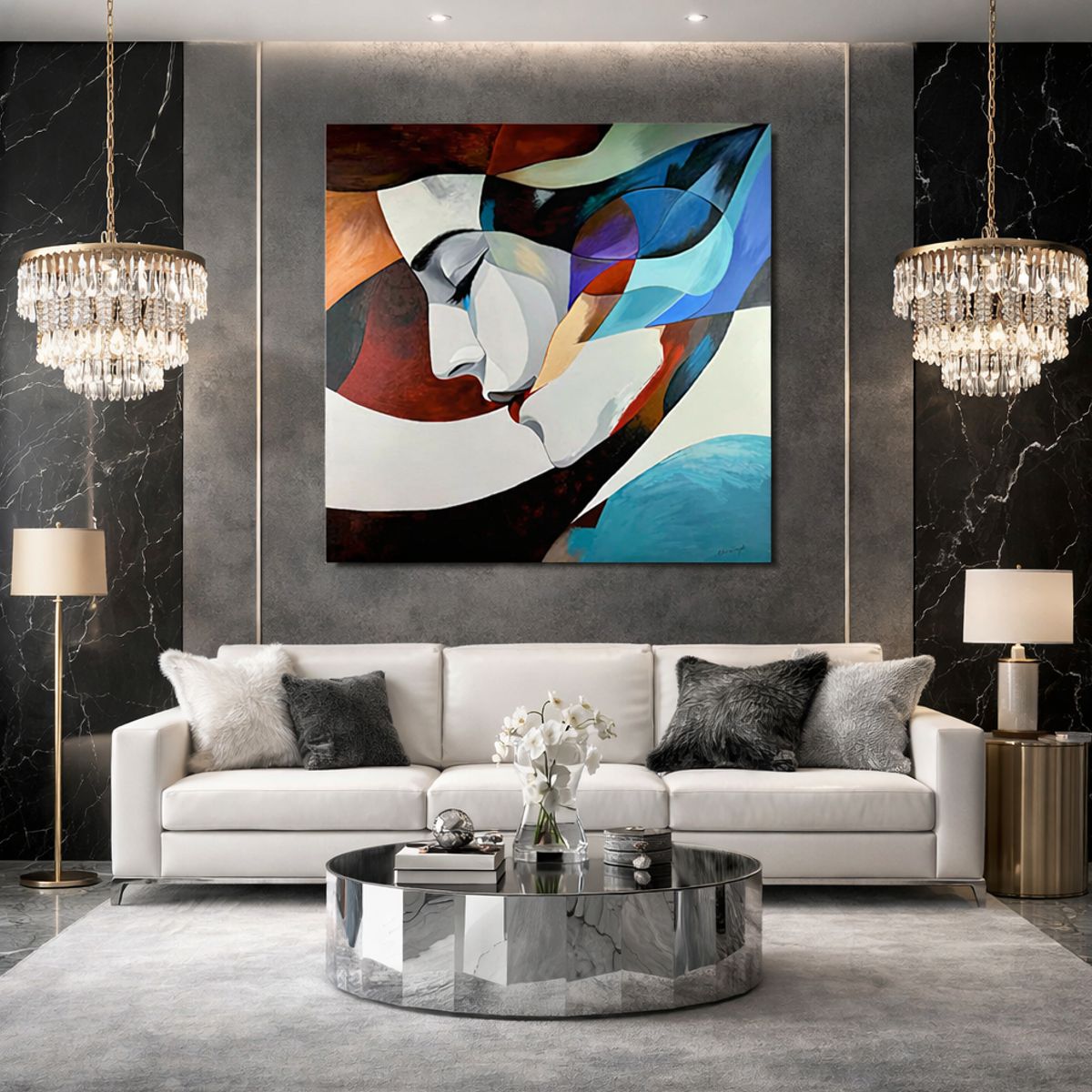Obraz abstrakcja portret ręcznie malowany „Madonna” 2329A Harmonijne linie, miękkie przejścia kolorów oraz nowoczesna kompozycja tworzą dzieło pełne emocji, spokoju i wyrafinowania. To obraz, który nie dominuje wnętrza – on je dopełnia.