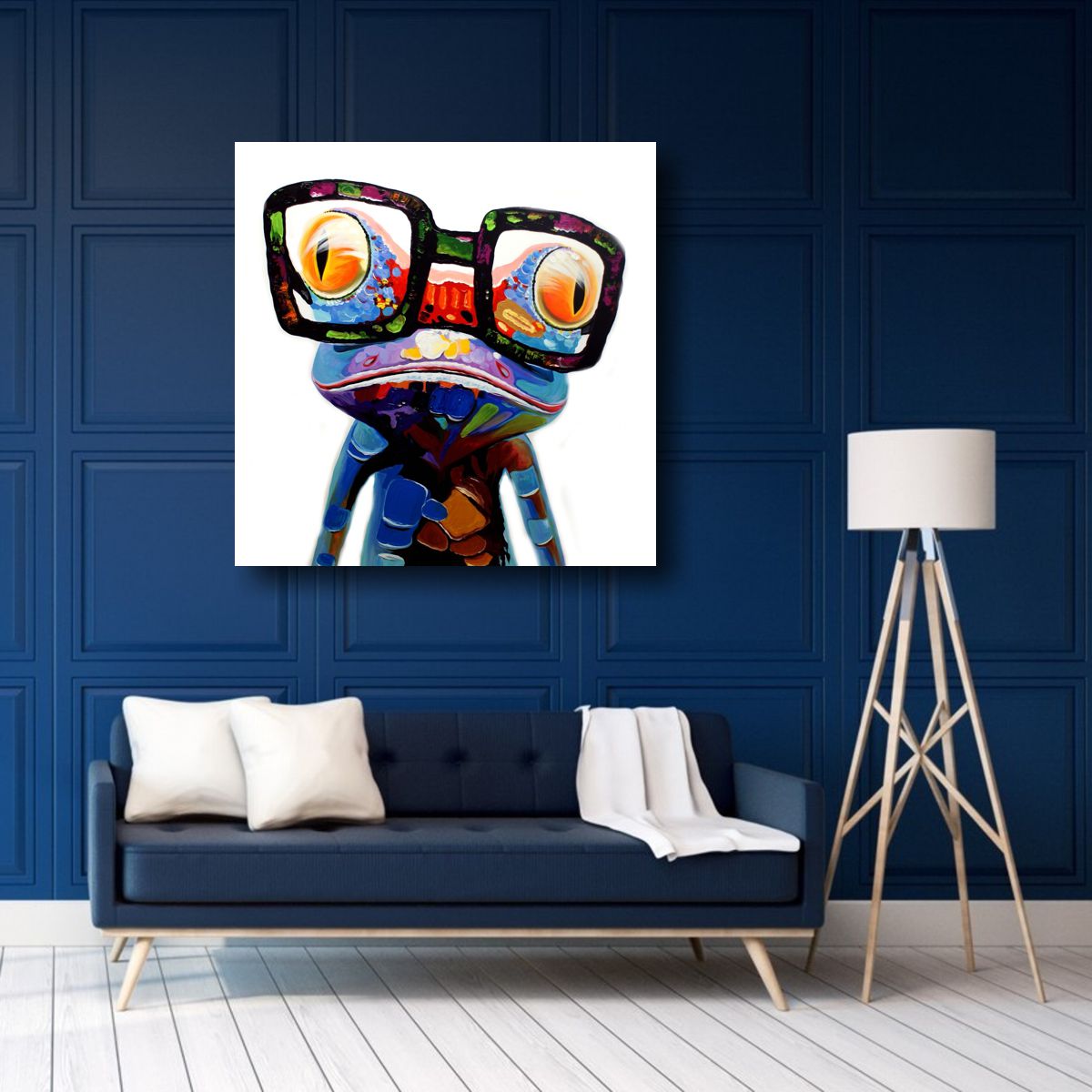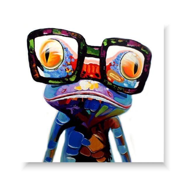 Obraz abstrakcyjny „Stylowa żaba” obrazy ze zwierzętami malowane ręcznie 1426A naszego autorstwa przedstawiający kolorową żabę w ciekawej stylizacji. Kolory użytej farby akrylowej dodają pozytywnej energii i wprawiają w dobry humor. Abstrakcja ta, to esencja najnowszych trendów. Idealnie ozdobi nowoczesny salon czy modne biuro. Malujemy także obrazy z kwiatami, obrazy do biura, obrazy z postaciami, obrazy portrety, duże obrazy na ścianę, obrazy do salonu, nowoczesne obrazy.