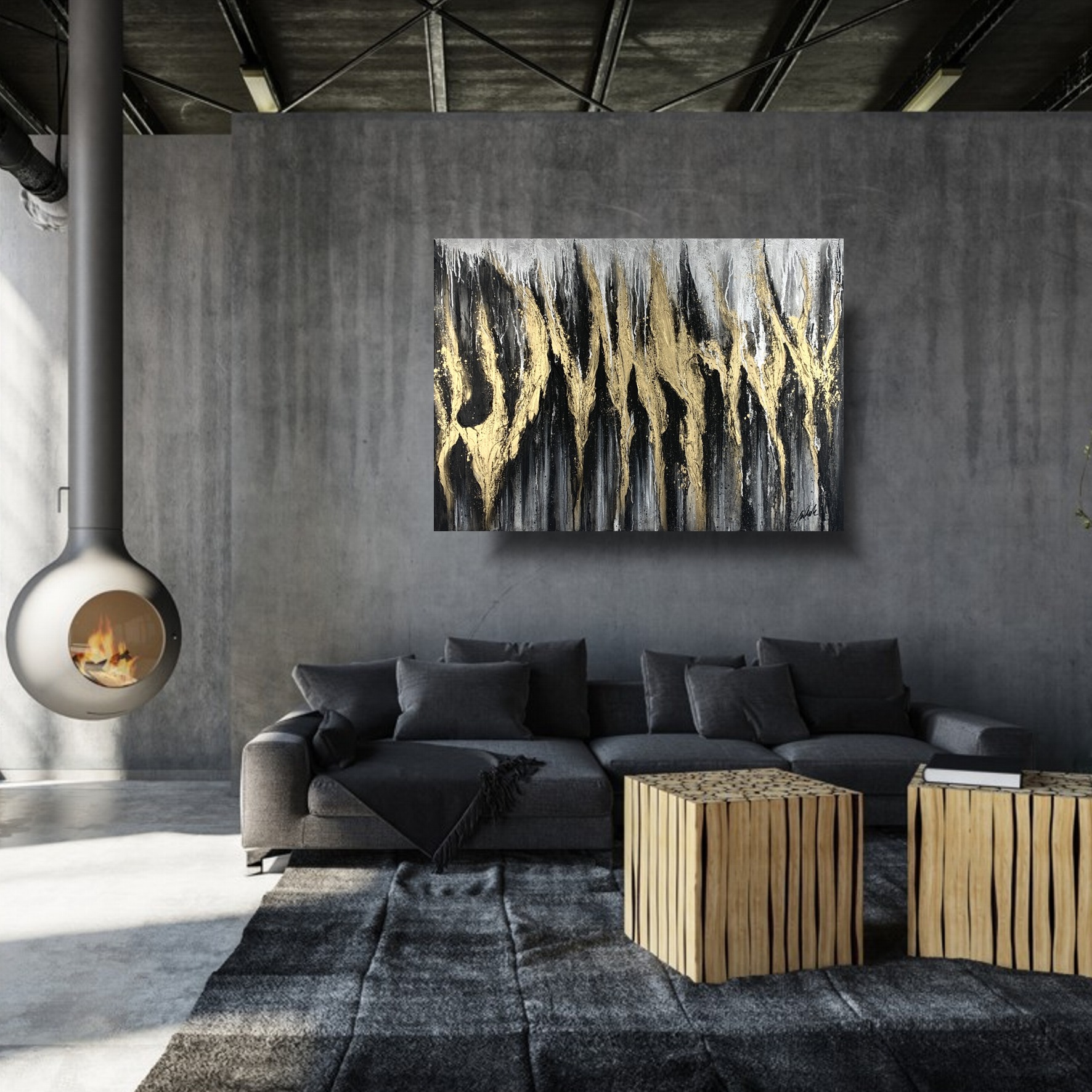 Kolorystyka obrazu: złoty, srebrny, szary, czarny.