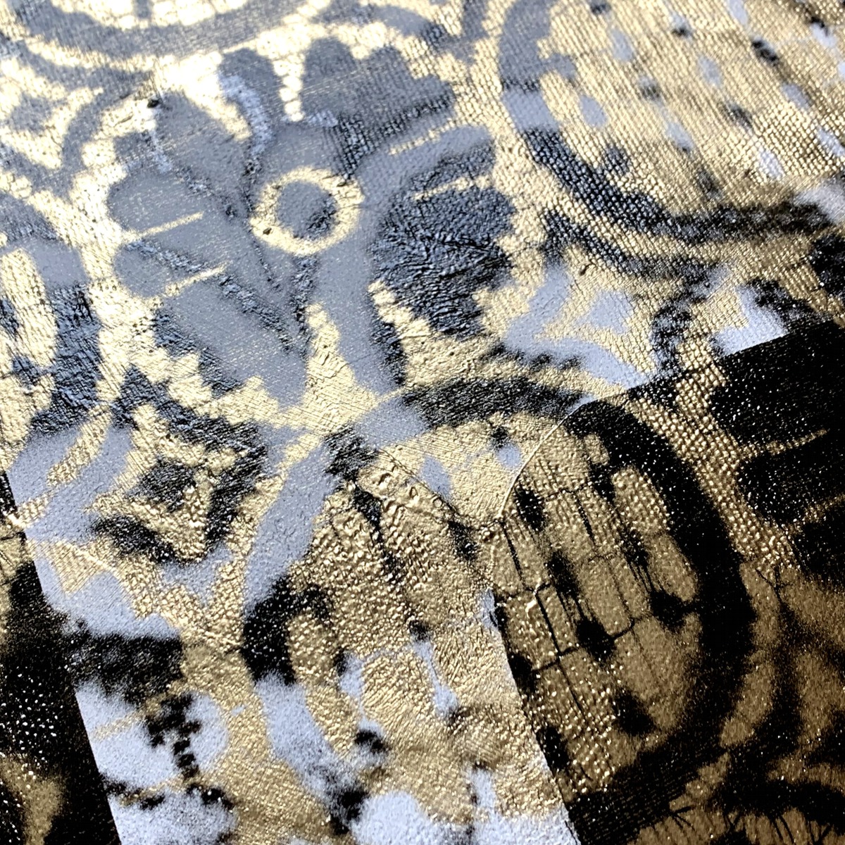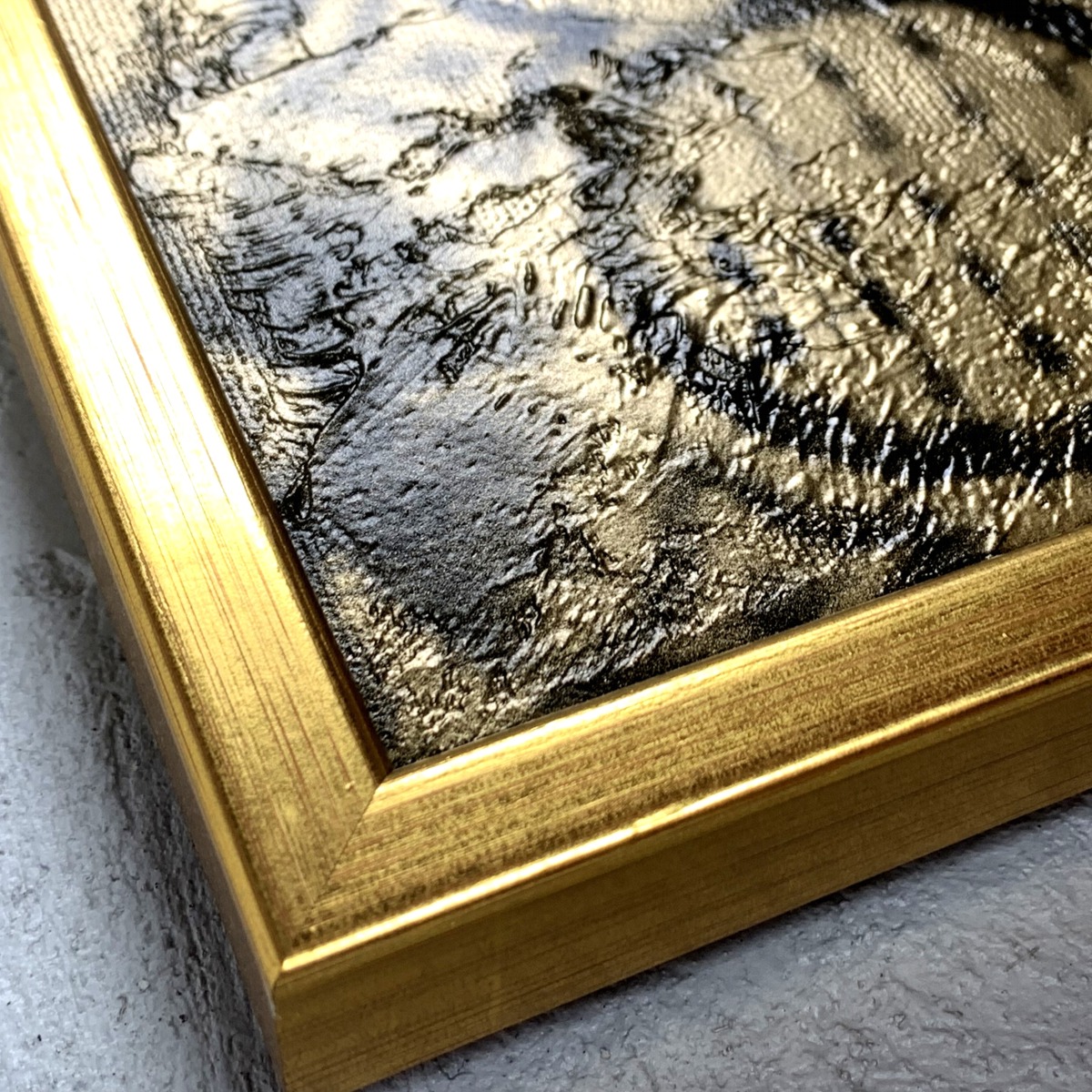 Kolorystyka obrazu: czarny, biały, złoty + złota rama (szerokość listwy 1,5cm)