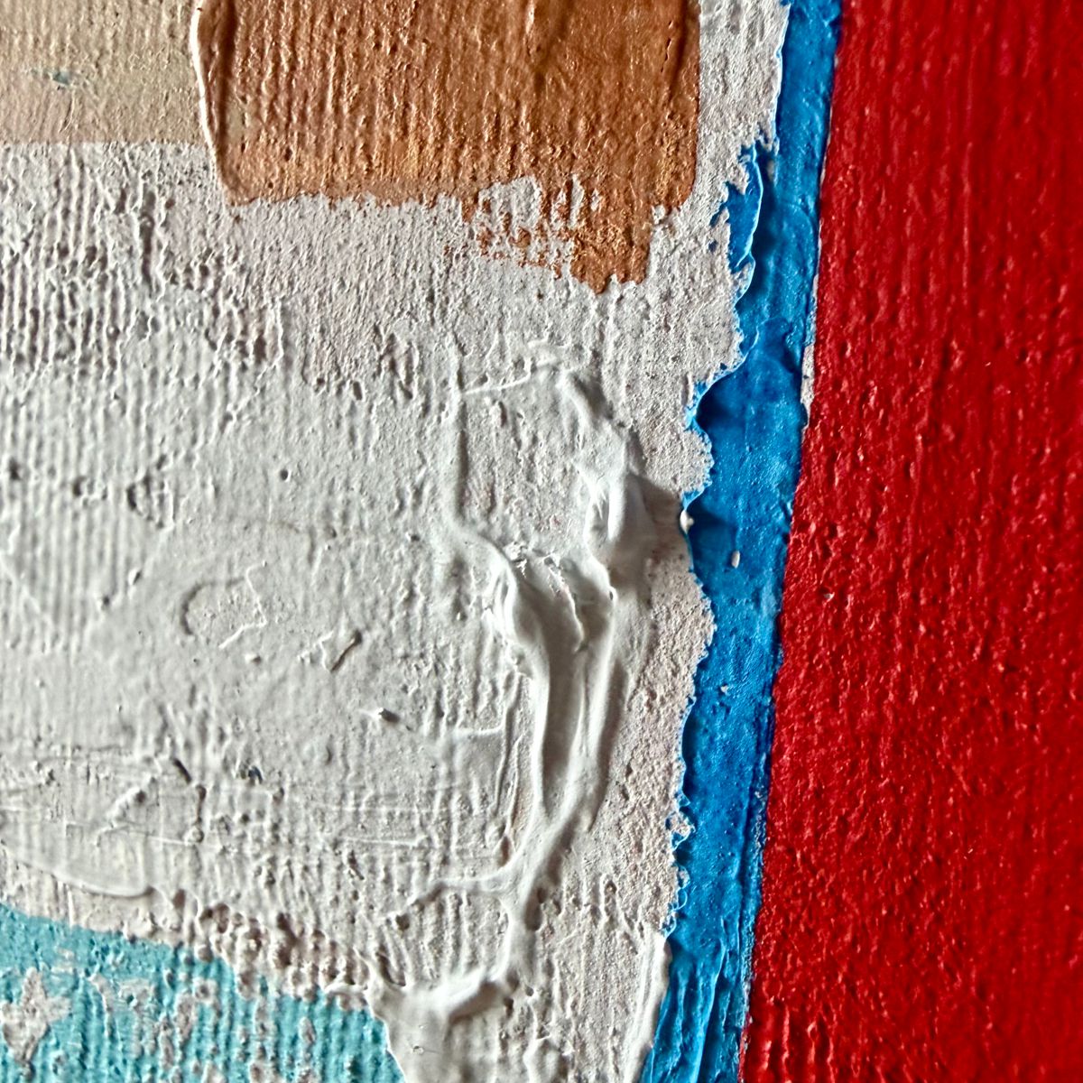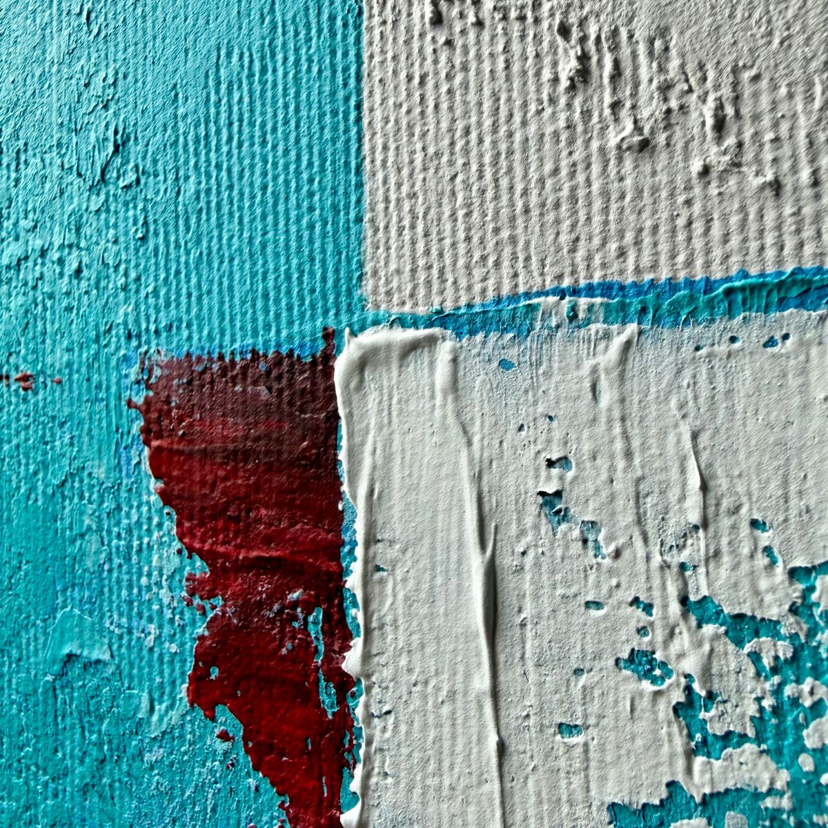 Warstwowa struktura farby dodaje głębi i materialności. Obraz reaguje na światło i zmienia się w zależności od kąta patrzenia, dzięki czemu wnętrze zyskuje dynamiczny element dekoracyjny.