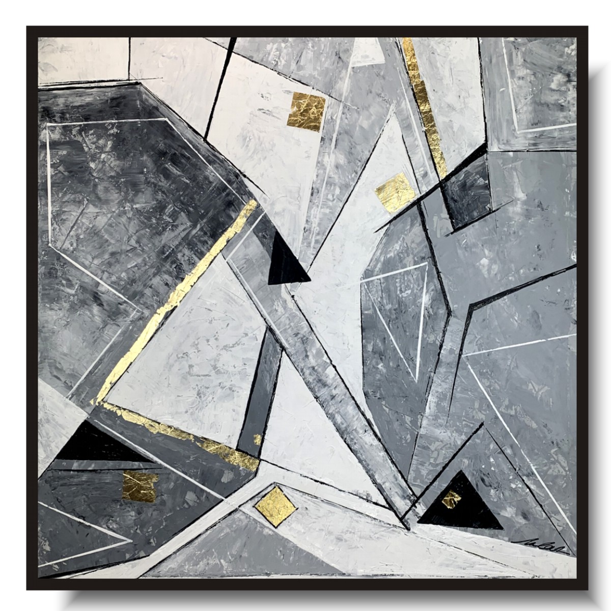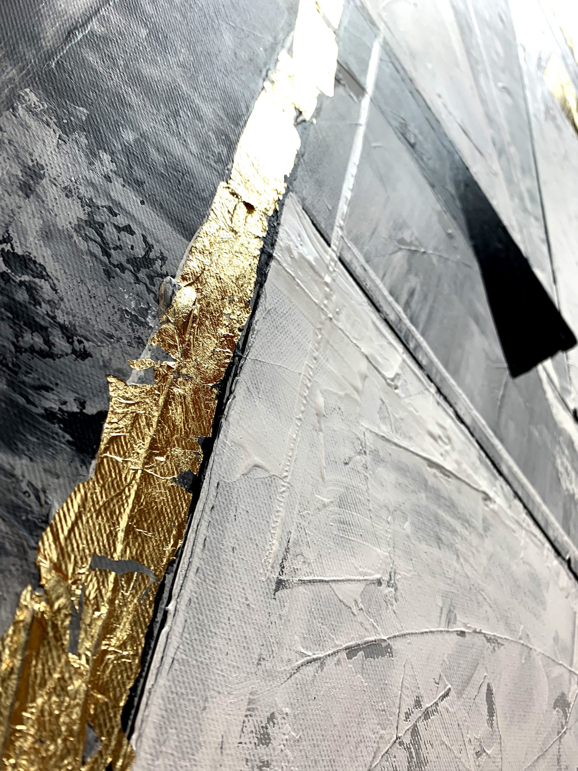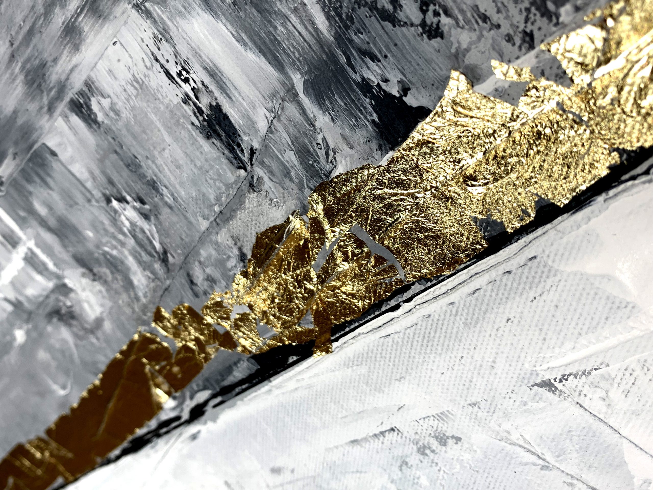 Kolorystyka obrazu: szary, biały, czarny + złote płatki