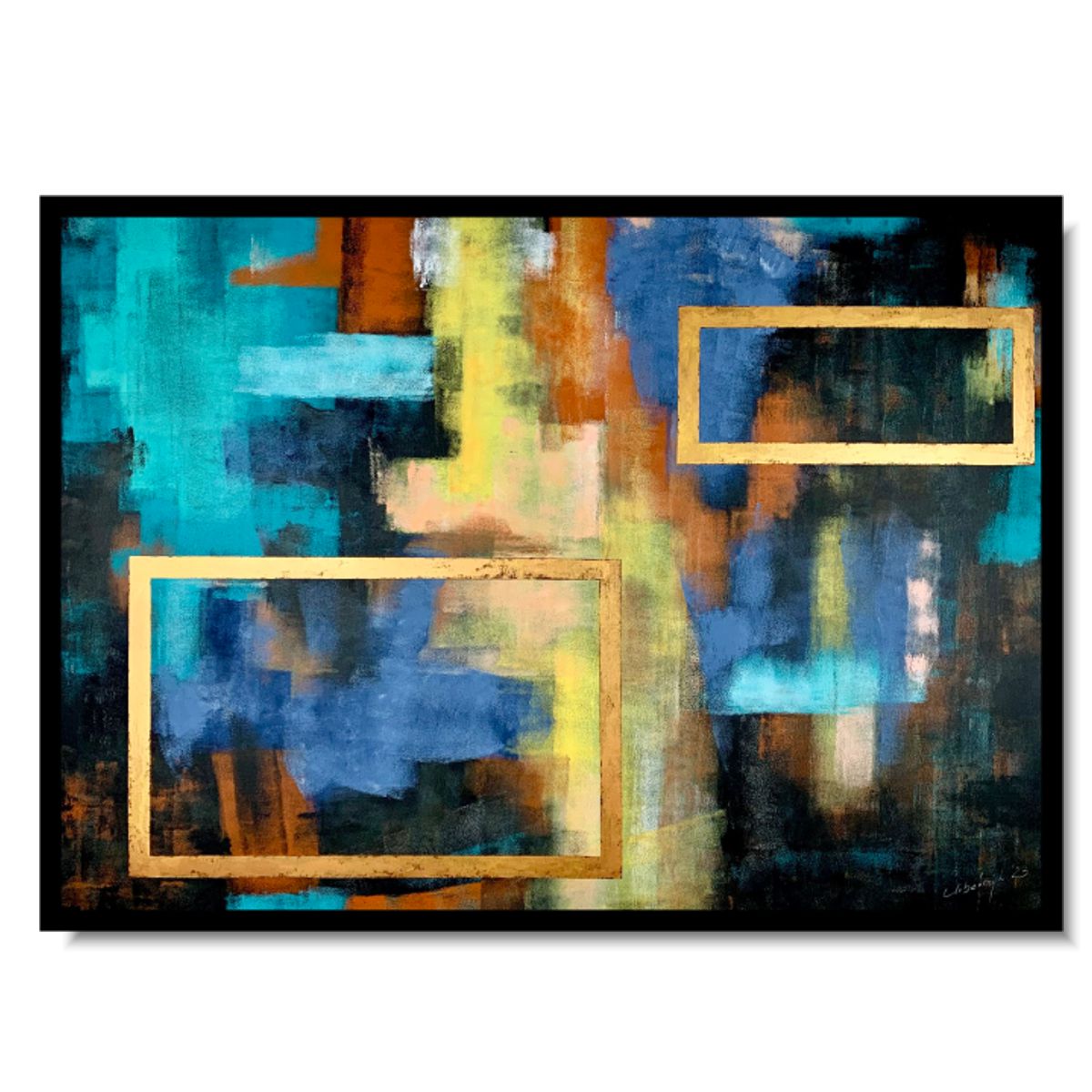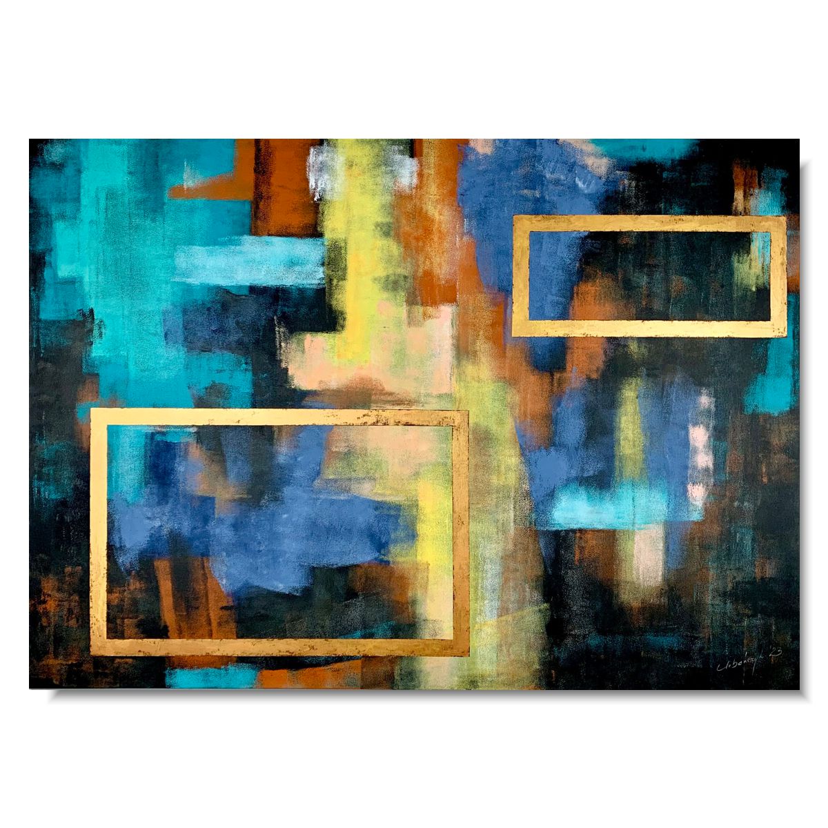 Obraz kolorowo złota abstrakcja