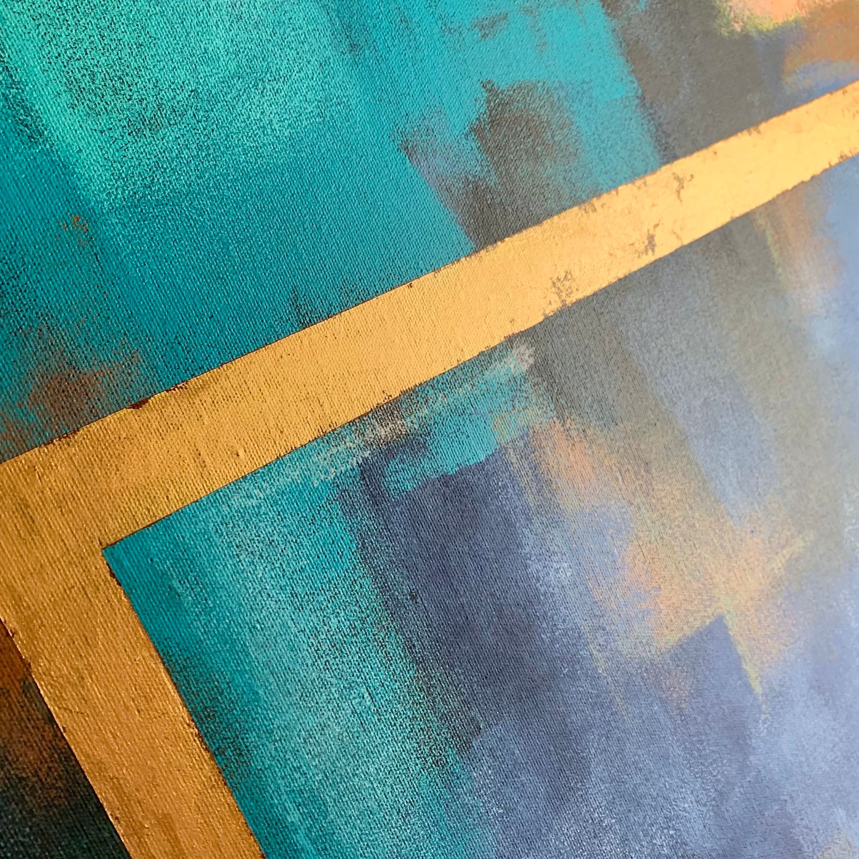 Kolorystyka przewodnia obrazu: turkusowy, żółty, złoty
