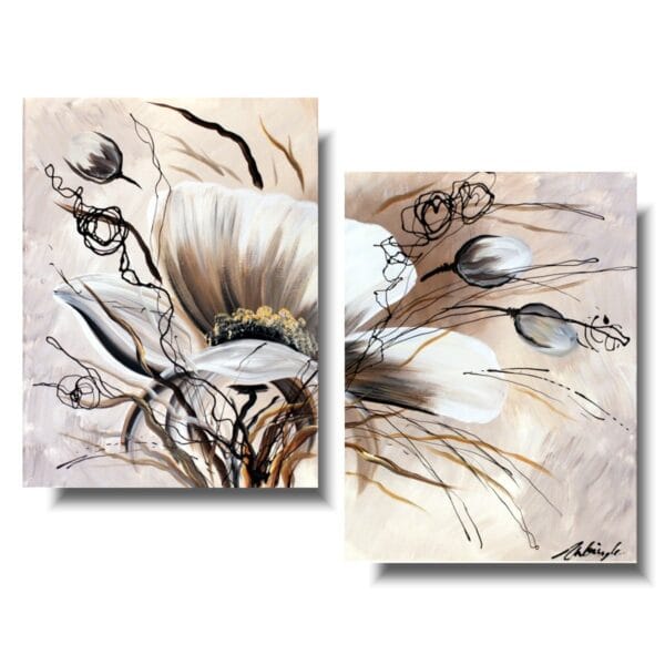 Obraz kwiaty beżowe maki składa się z 2 części stanowiących komplet.