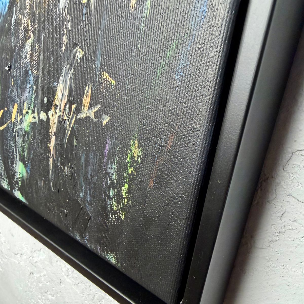 Każdy obraz powstaje ręcznie, dlatego jest unikatowy. Widoczna struktura farby oraz wyraźne pociągnięcia pędzla nadają dziełu autentyczny charakter.