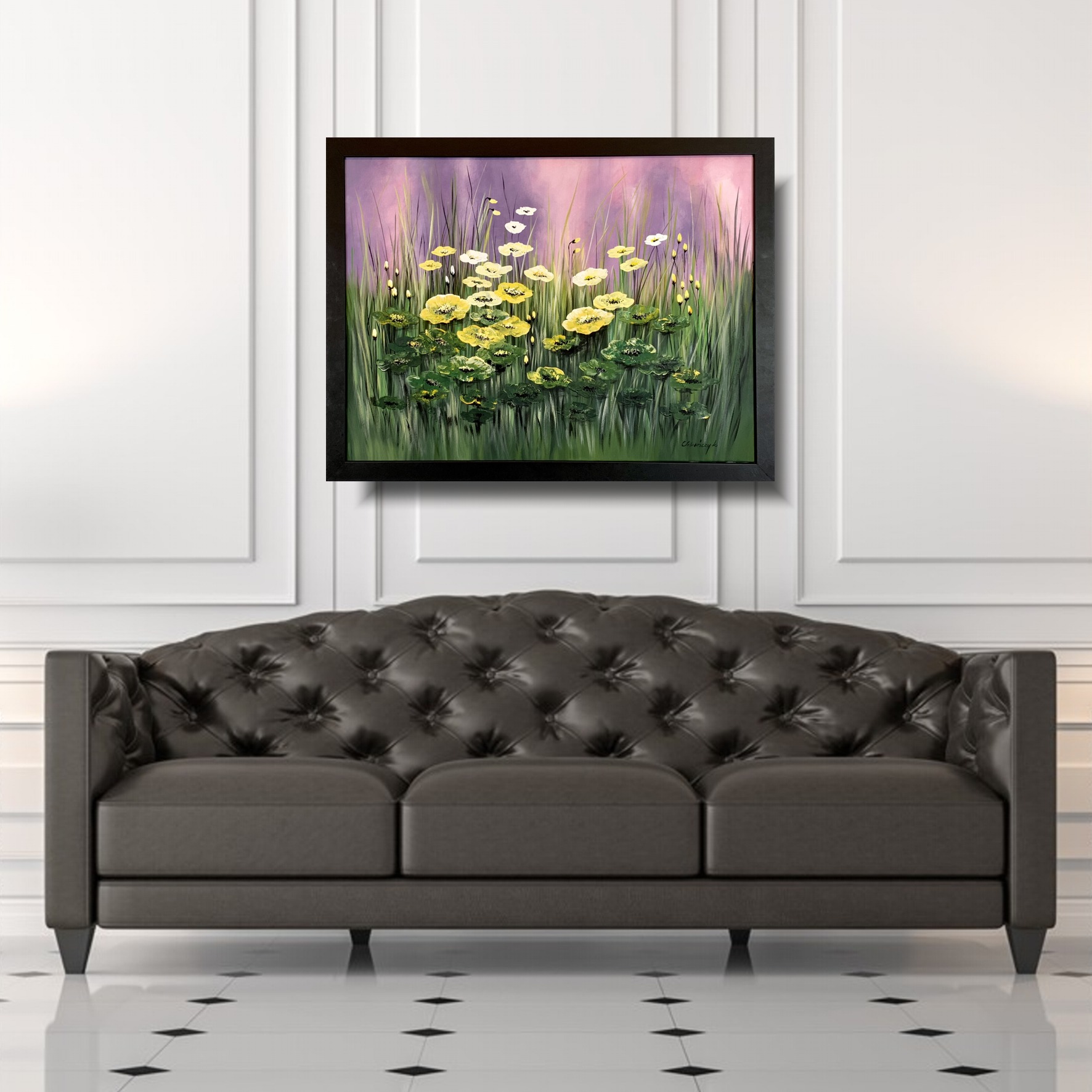Obraz łąka żółte jaskry składa się z 1 części + rama w komplecie