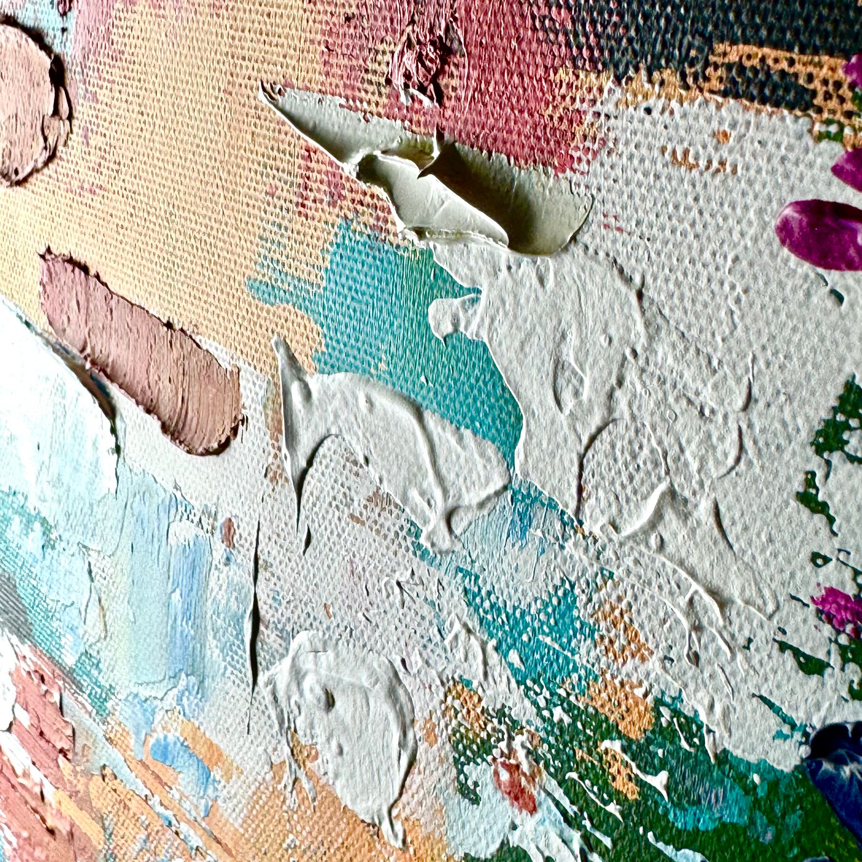 Obraz ręcznie malowany na płótnie „Eksplozja barw” 2260A. Ten abstrakcyjny obraz to wizualna eksplozja kolorów i form, które tworzą niezwykłą kompozycję pełną energii i emocji. Na płótnie widzimy wielokolorową plamę, która zdaje się wyrażać całe spektrum ludzkich uczuć i wrażeń. Kolorowe plamy łączą się i rozpraszają, tworząc dynamiczną baśniową scenerię. Każda plama jest jak odrębny świat, mający swoje znaczenie i charakter. Nie ma tu granic, a granice między kolorami wydają się się zlewać, tworząc wrażenie ruchu i zmiany. Intensywność kolorów wywołuje uczucia radości, zaskoczenia i ciekawości. Wzory i linie płynące pomiędzy plamami tworzą pewną strukturę, co nadaje kompozycji pewnego porządku w chaosie kolorów.