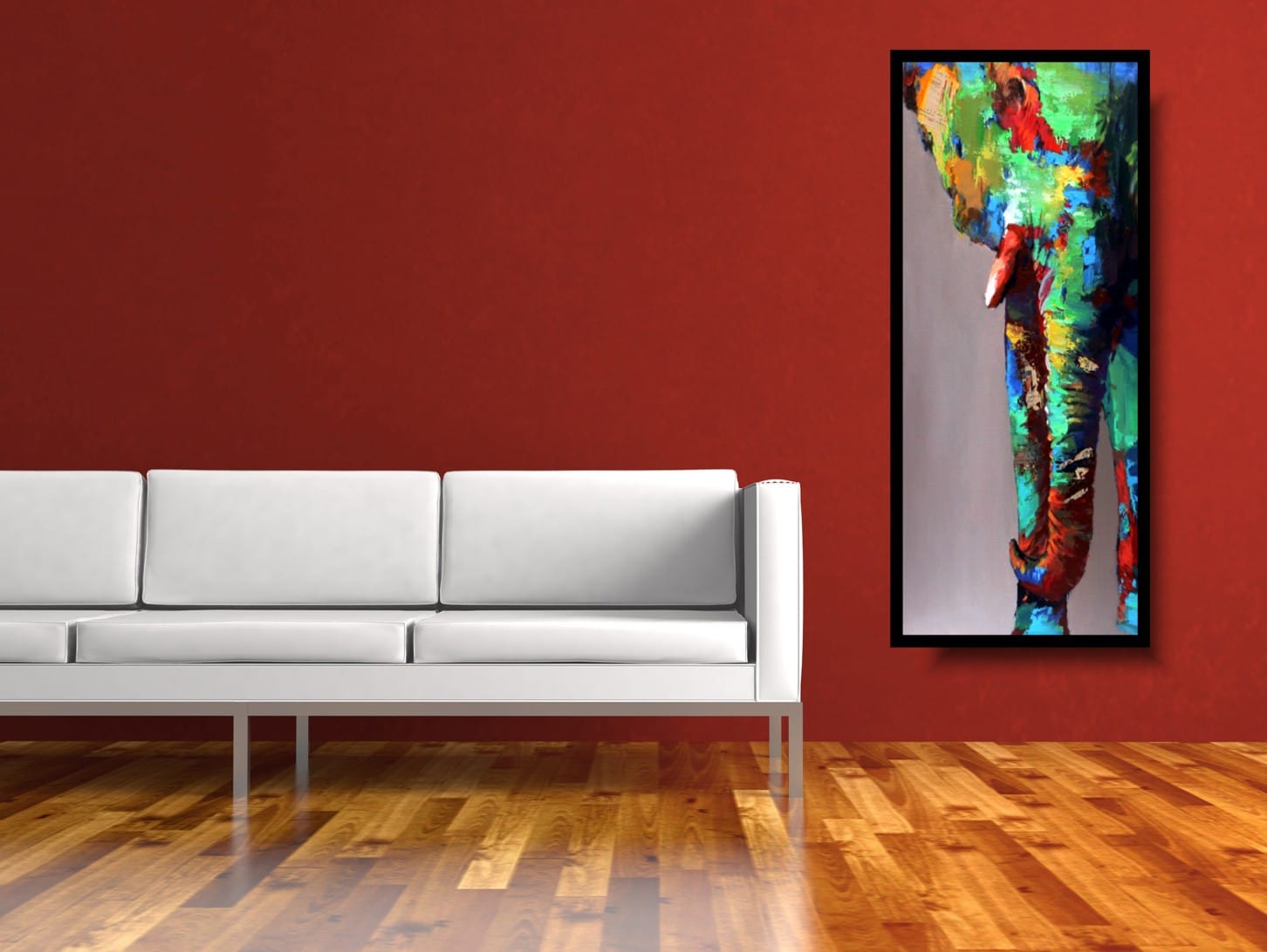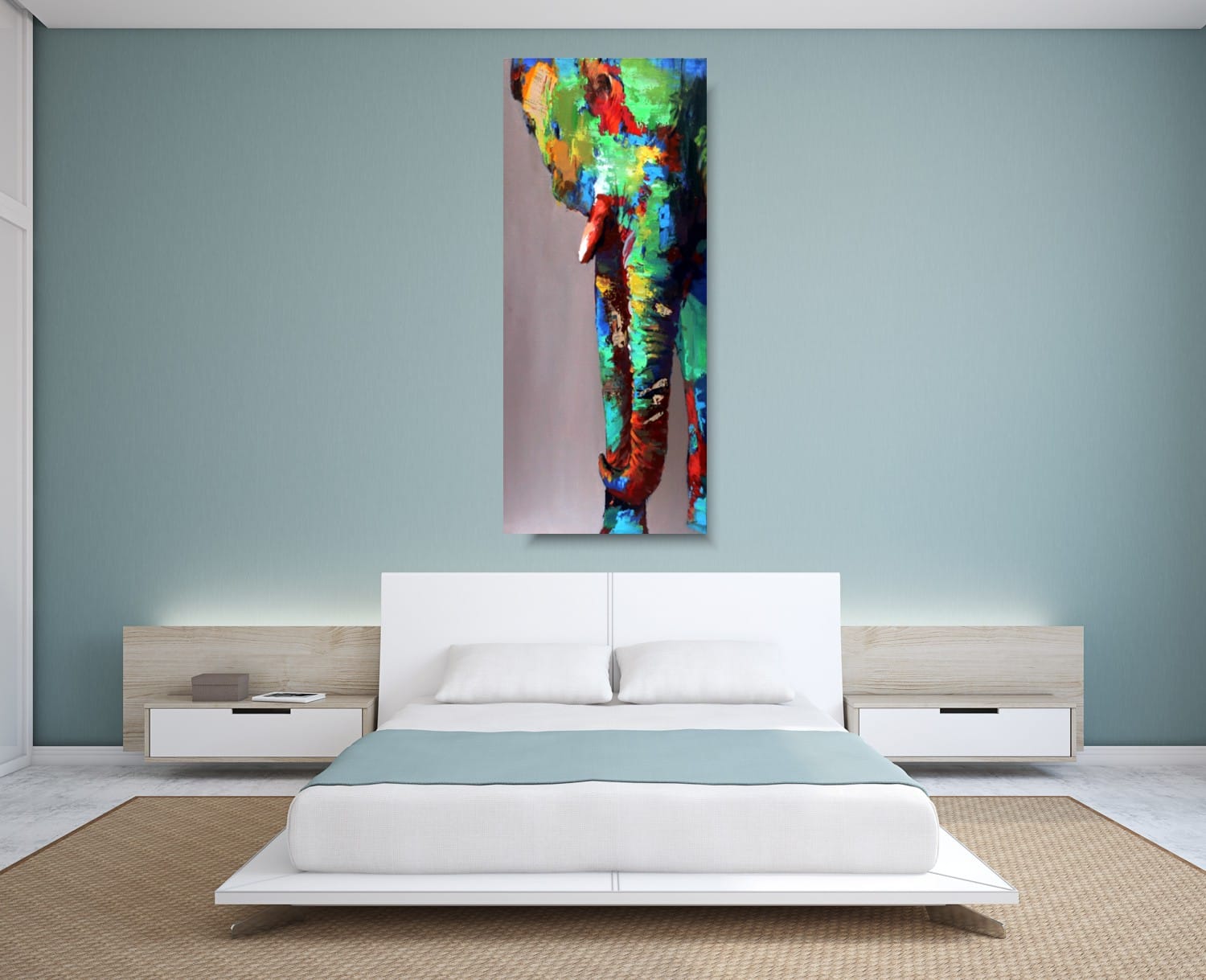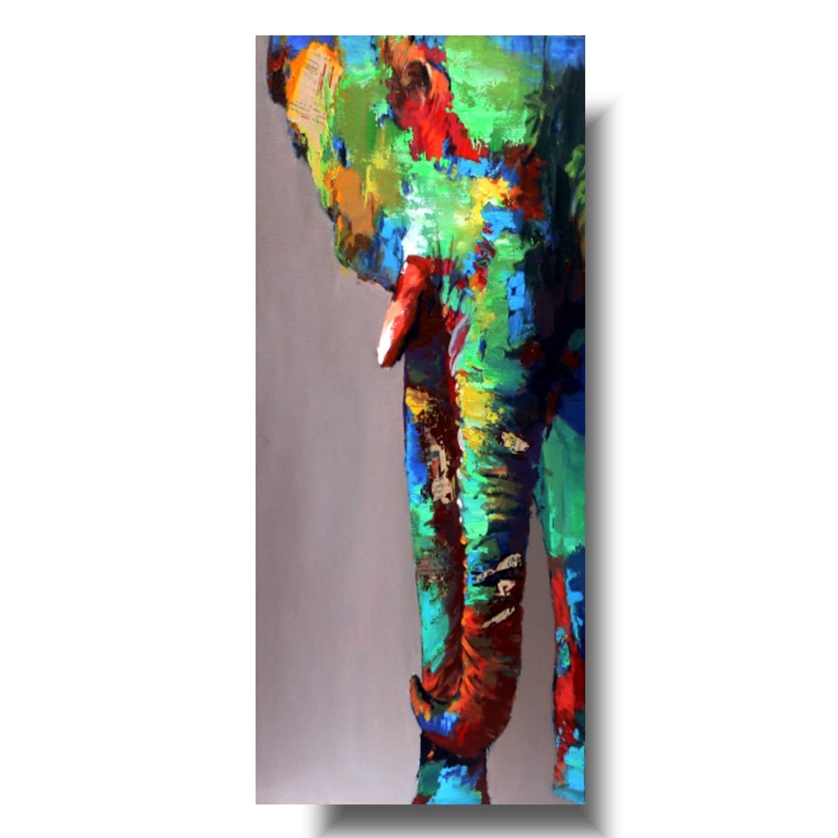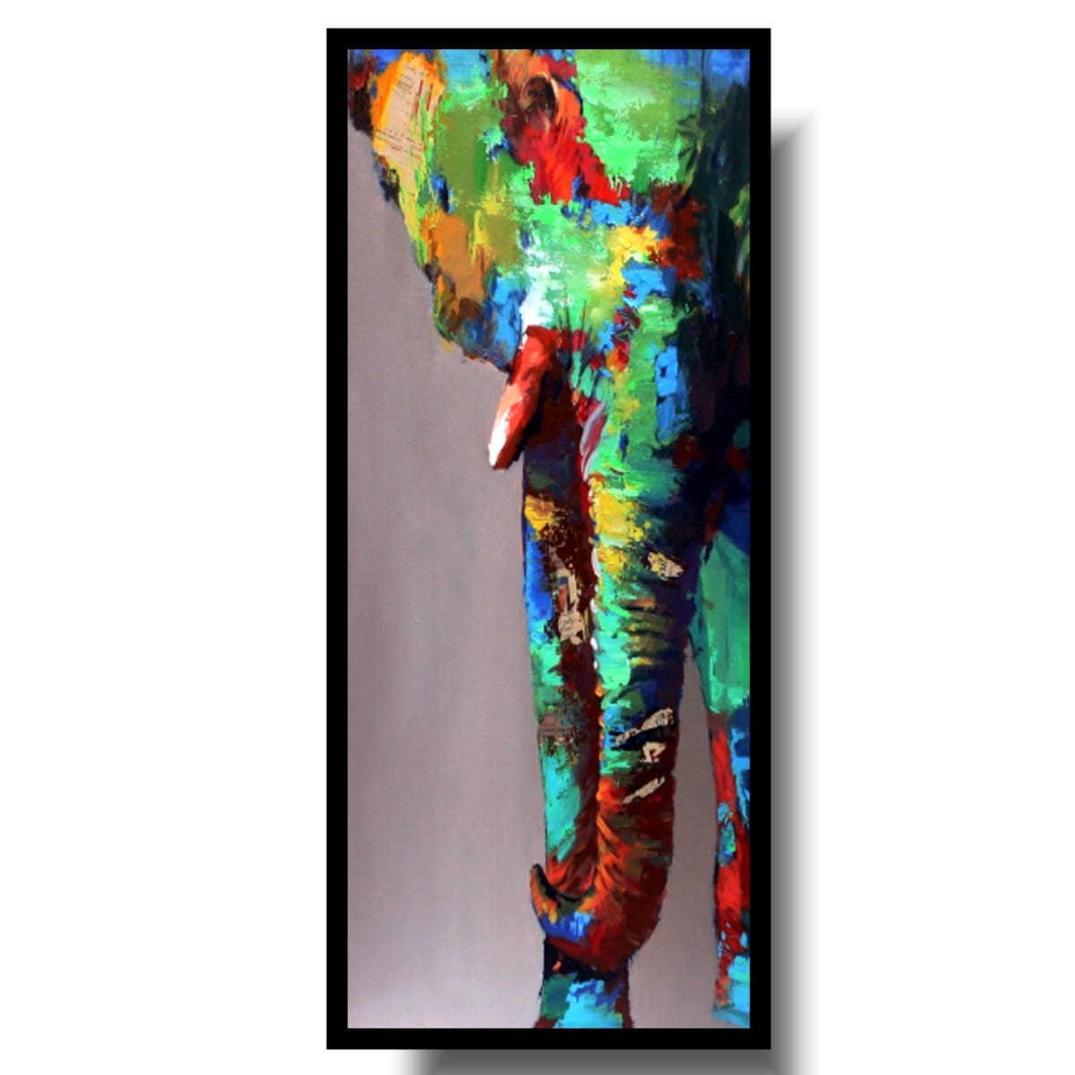 Obraz na płótnie ręcznie malowany „Słoń w kolorze” składa się z 1 części.