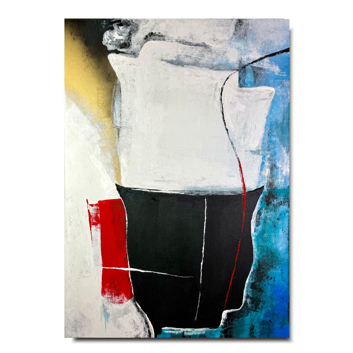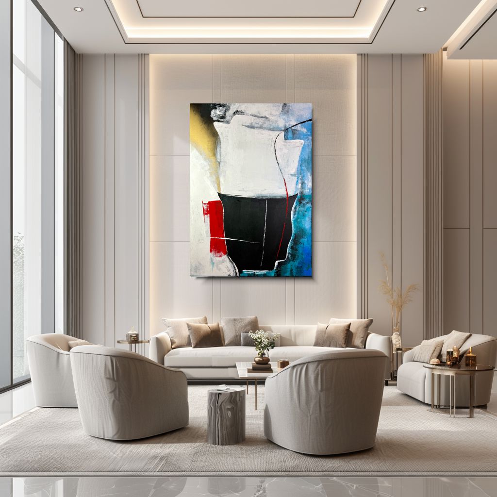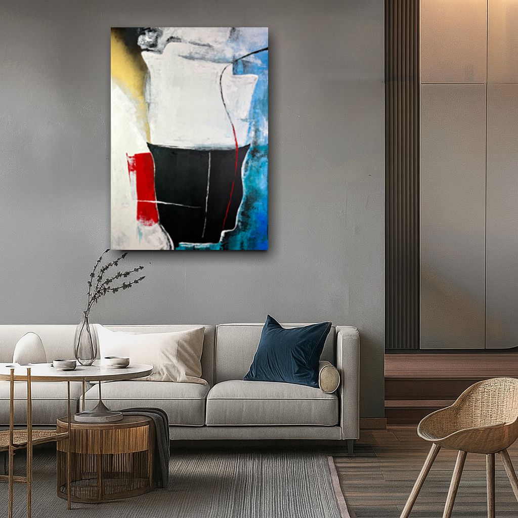 Obraz nowoczesna abstrakcja „Równowaga ciszy” 2360A – ten nowoczesny obraz abstrakcyjny przyciąga uwagę silnym kontrastem form i barw. Głęboka czerń zestawiona z bielą, akcentami czerwieni, złota i chłodnego błękitu tworzy kompozycję pełną napięcia, ale jednocześnie harmonii. Wyraźna struktura farby i dynamiczne linie nadają dziełu głębię oraz emocjonalny charakter. Obraz doskonale sprawdzi się we wnętrzach nowoczesnych, loftowych i minimalistycznych – zarówno w salonie, gabinecie, jak i przestrzeni biurowej czy hotelowej. To propozycja dla osób ceniących sztukę współczesną, która nie narzuca jednoznacznej interpretacji, lecz pobudza wyobraźnię.