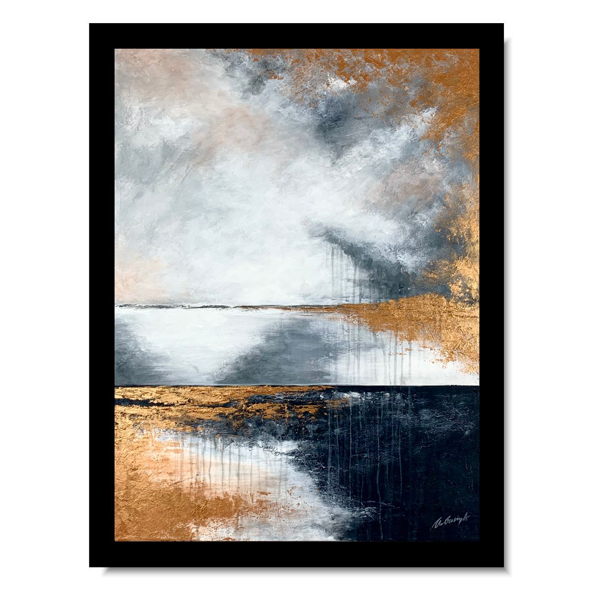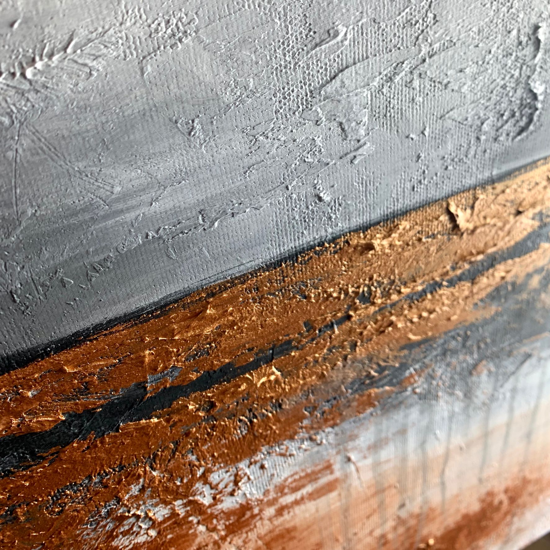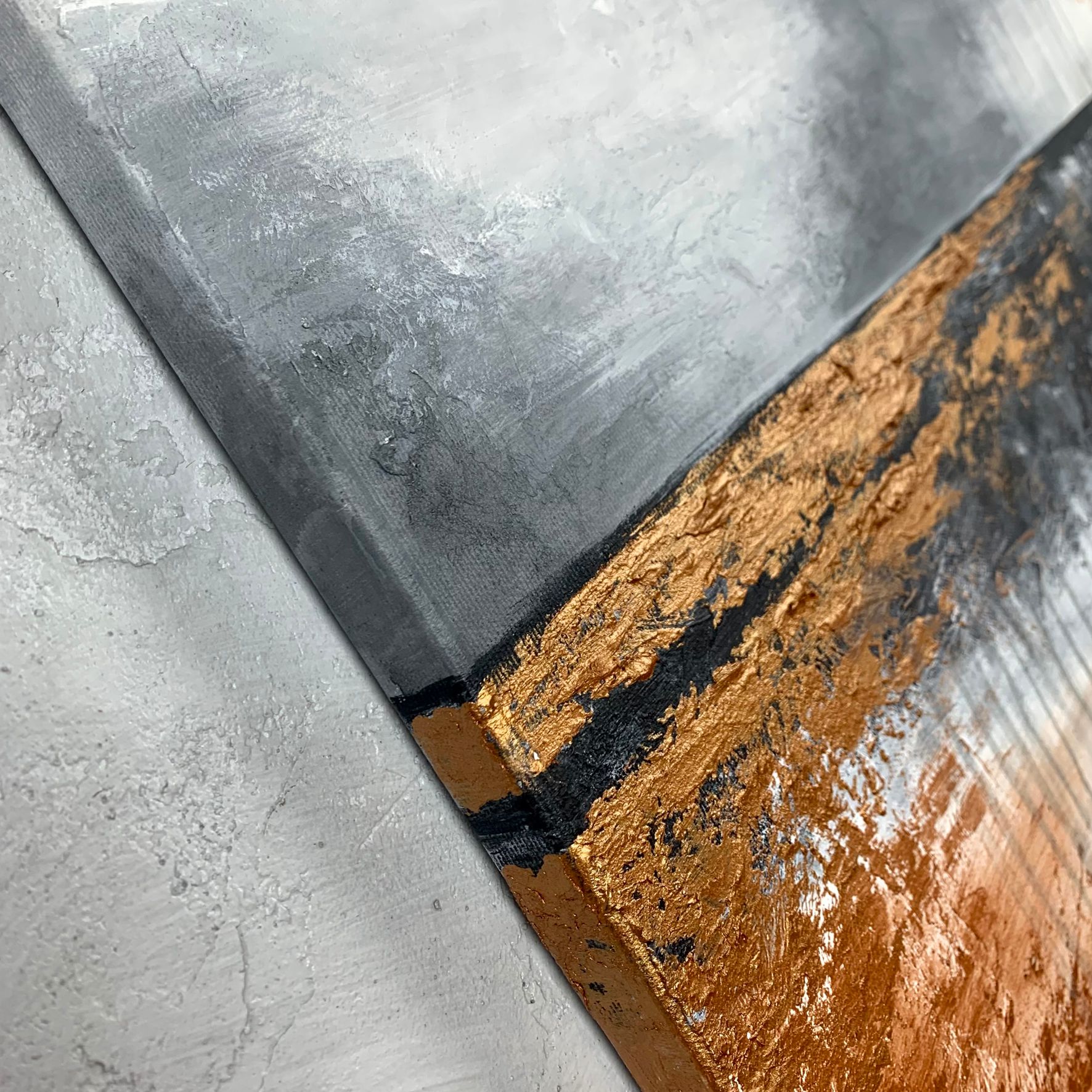 Kolorystyka obrazu: miedziany, szary, biały, czarny. Boki wykończone pod kolor dzieła.