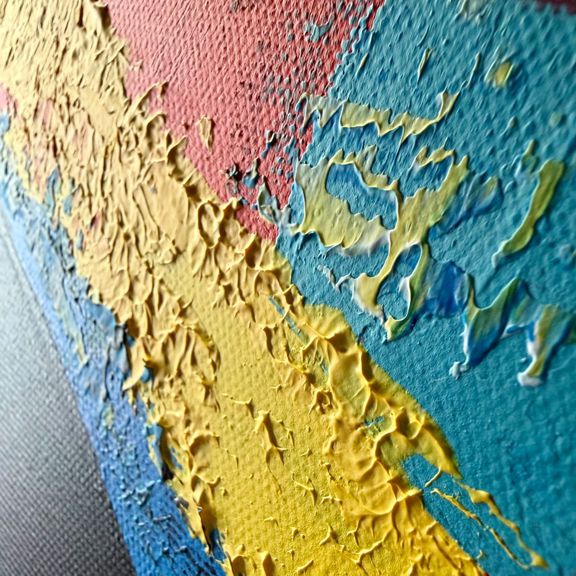 Każdy element obrazu powstaje ręcznie, dzięki czemu posiada unikatową strukturę i niepowtarzalny charakter.