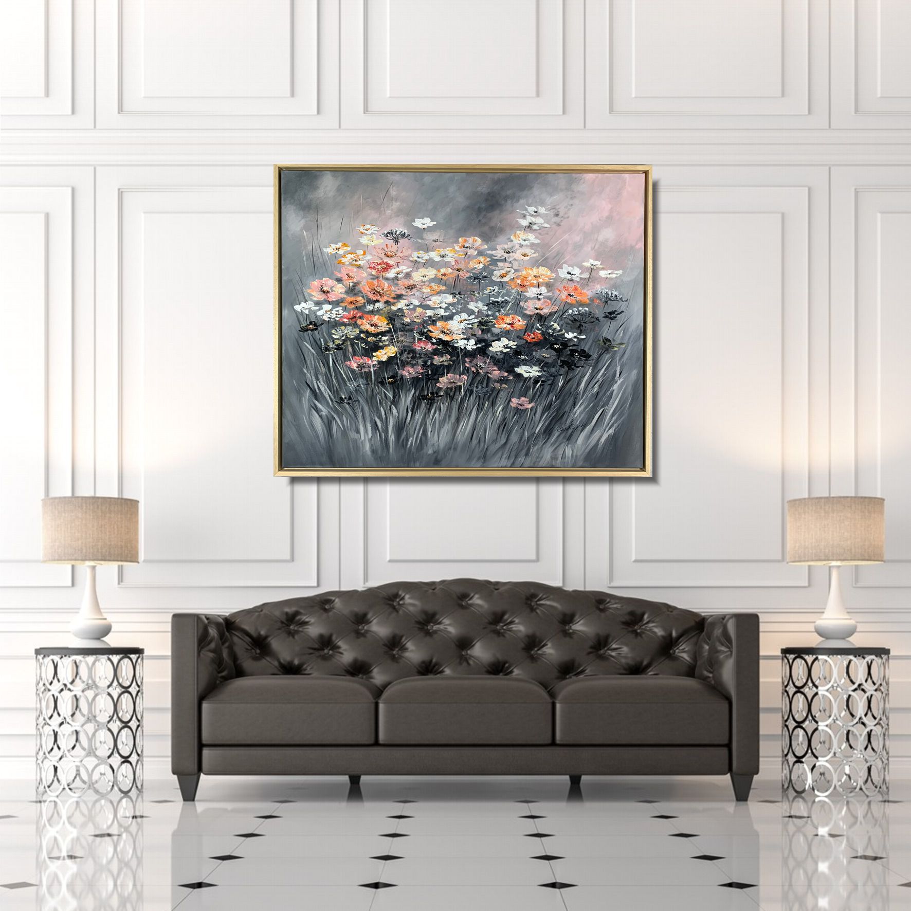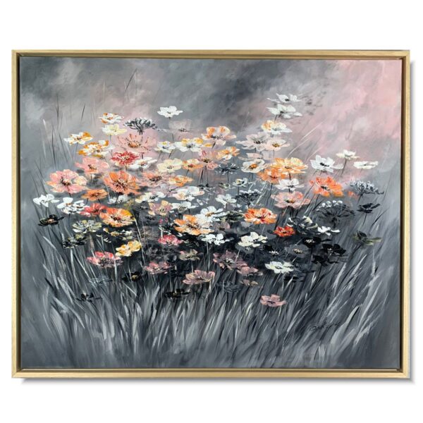 Obraz ręcznie malowany kwiaty na łące składa się z 1 części + rama w komplecie