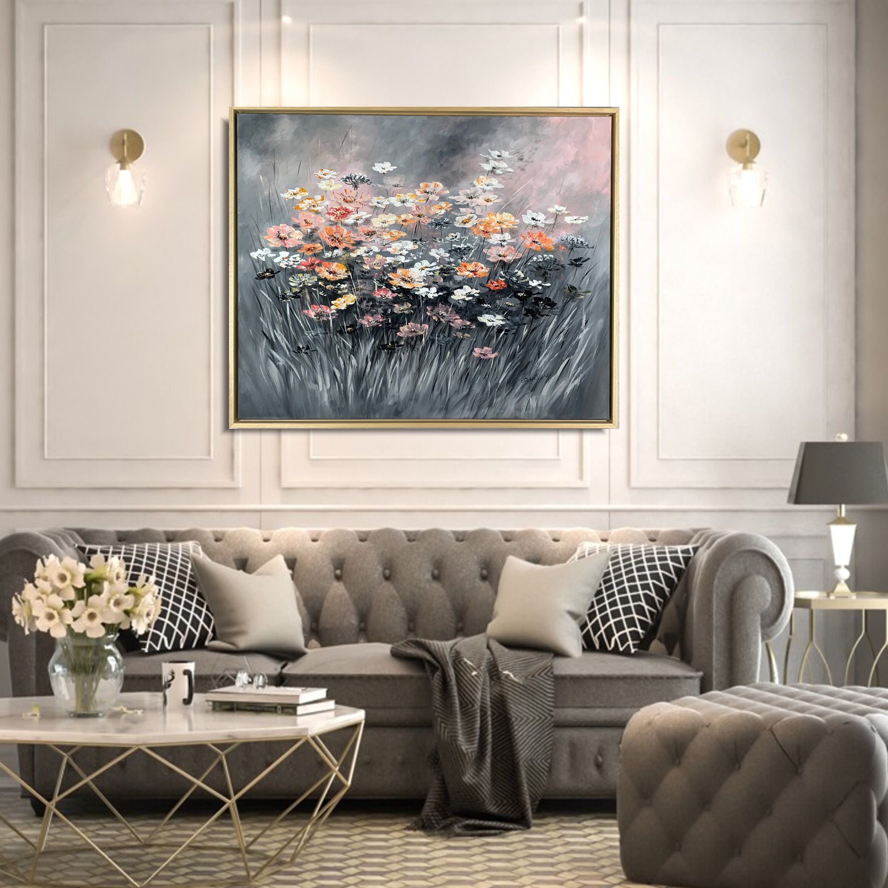 Obraz ręcznie malowany kwiaty na łące
