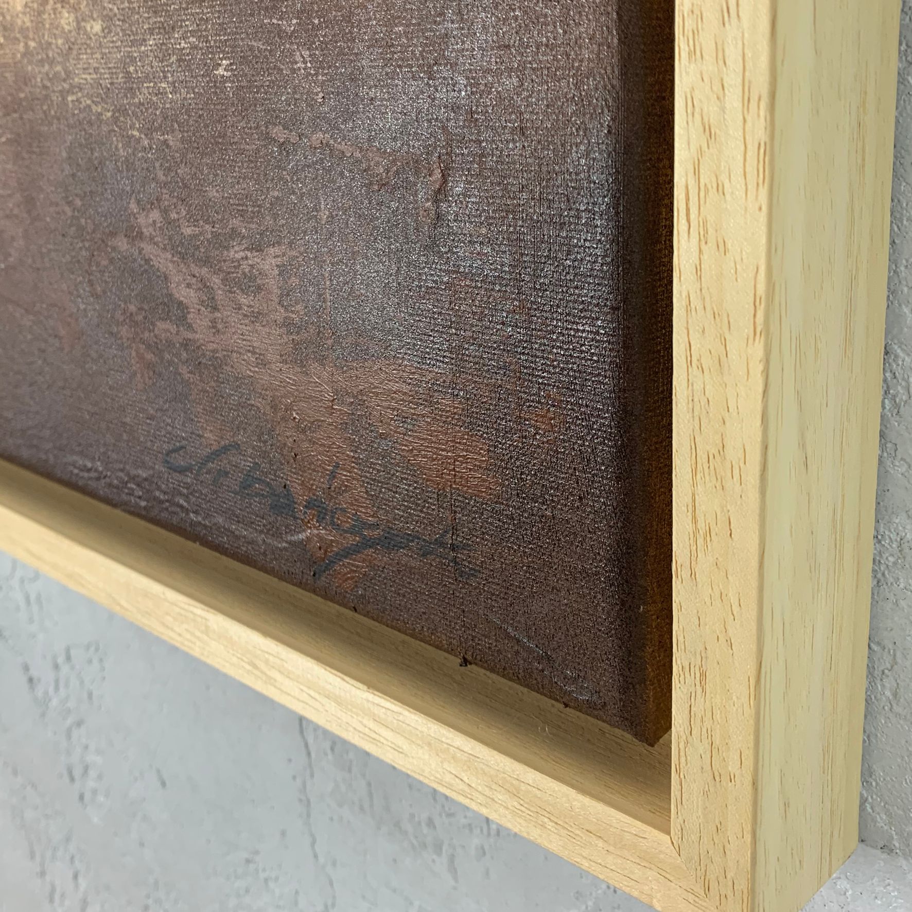 Kolorystyka obrazu: złoty, rudy, brązowy, beżowy, szary, czarny + rama pudełkowa w kolorze naturalnym