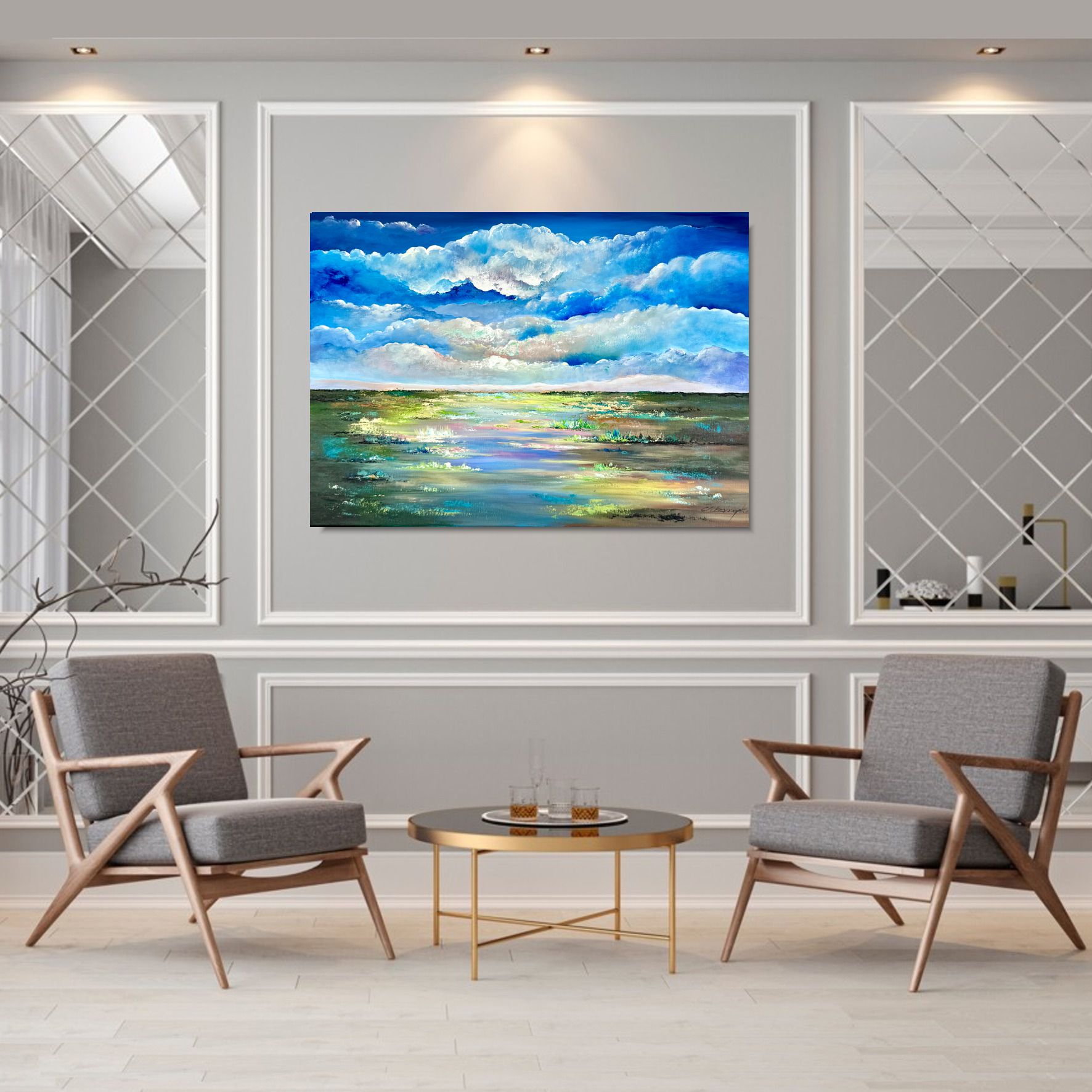 Obraz ręcznie malowany na płótnie „Chmury nad rozlewiskiem” 2146A