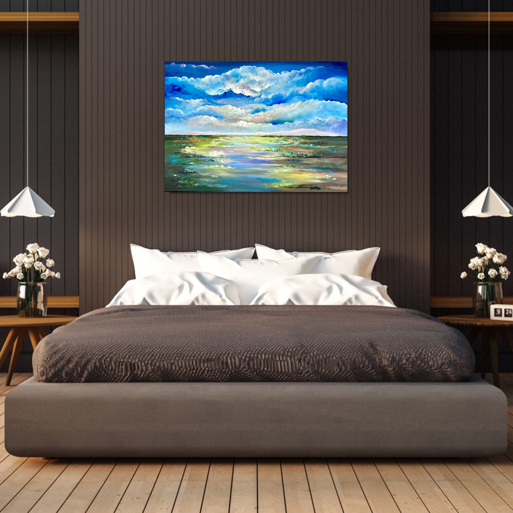 Obraz ręcznie malowany na płótnie "Chmury nad rozlewiskiem" 2146A