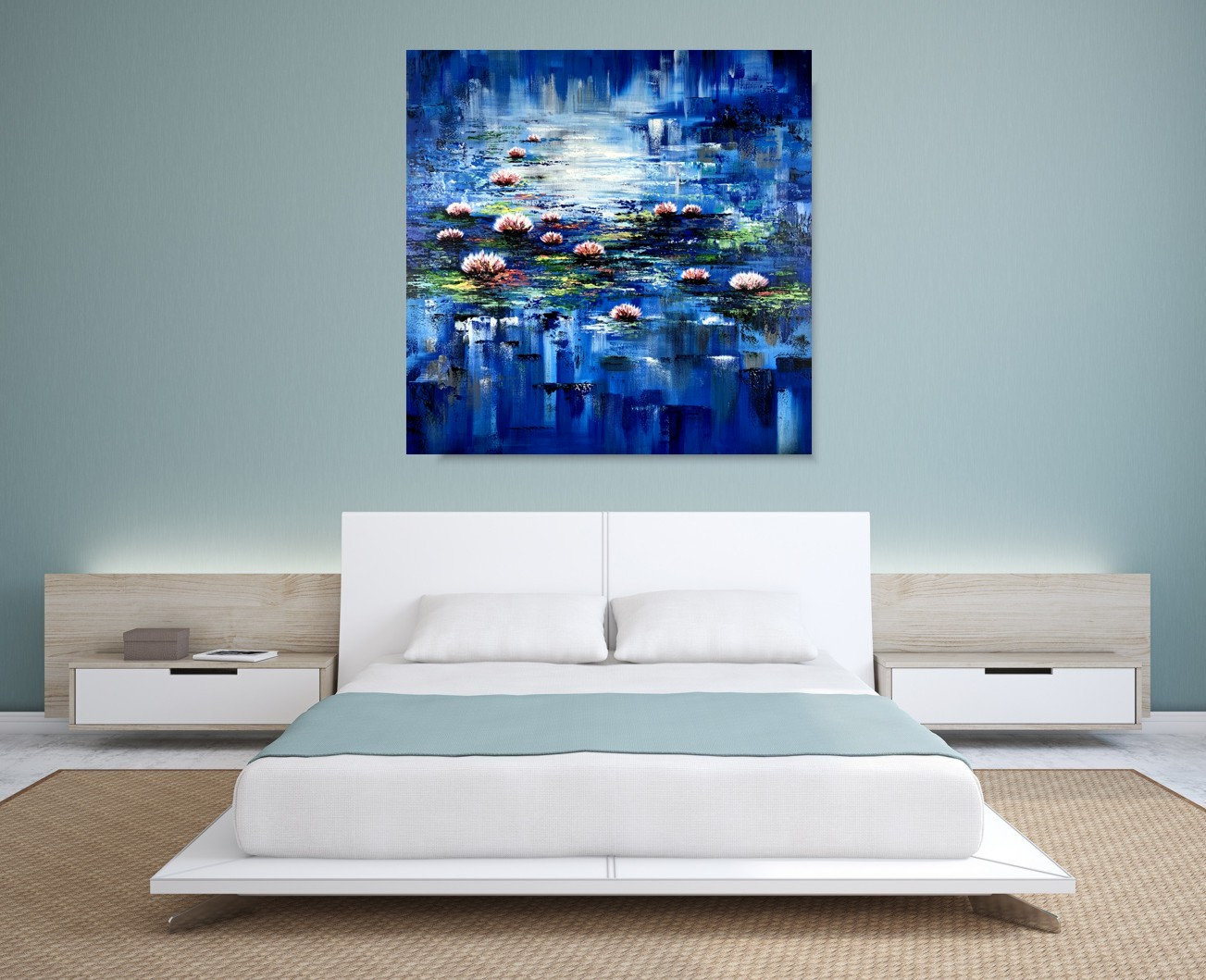 Obraz współczesny Piękne nenufary obrazy ręcznie malowane 1942A naszego autorstwa są niekonwencjonalne pod względem formalnym jaki i warsztatowym. Nasze obrazy ręcznie malowane wyróżniają się oryginalnością, nawiązują do klasycznych wzorców i najnowszych trendów. Kolory wybieramy z najmodniejszej palety barw, wzory inspirowane są nowościami w designie. To piękny duży obraz, można powiesić go w ramie lub bez ramy. Zapraszamy do sprawdzenia innych kategorii: obrazy do biura, obrazy do salonu, obrazy do pokoju młodzieżowego, obrazy do kuchni, obrazy do sypialni. Jeśli nie znajdą Państwo niczego interesującego malujemy także obrazy na zamówienie w pełni dostosowane do Państwa wymagań. Prosimy o kontakt w tej sprawie na sklep@dobrasztuka.pl