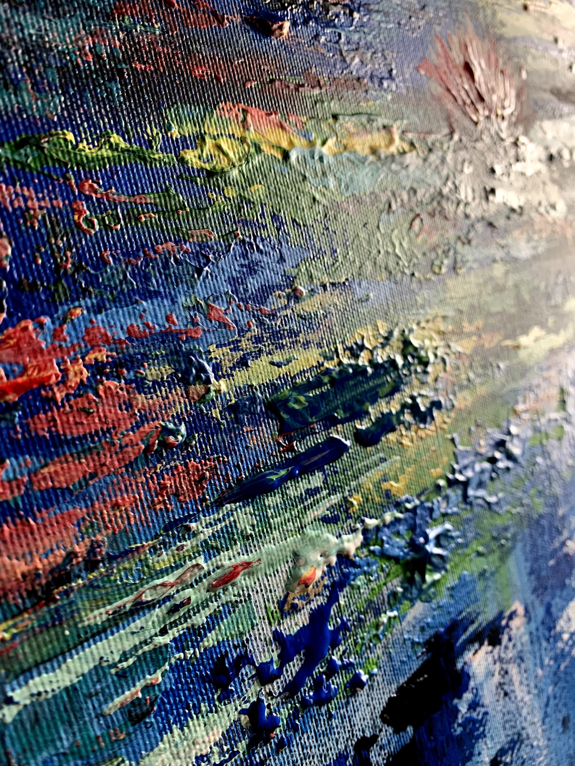 Kolorystyka obrazu: różowy, niebieski, granatowy, zielony, żółty, szary, biały, czarny,