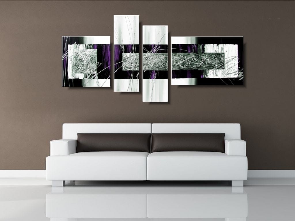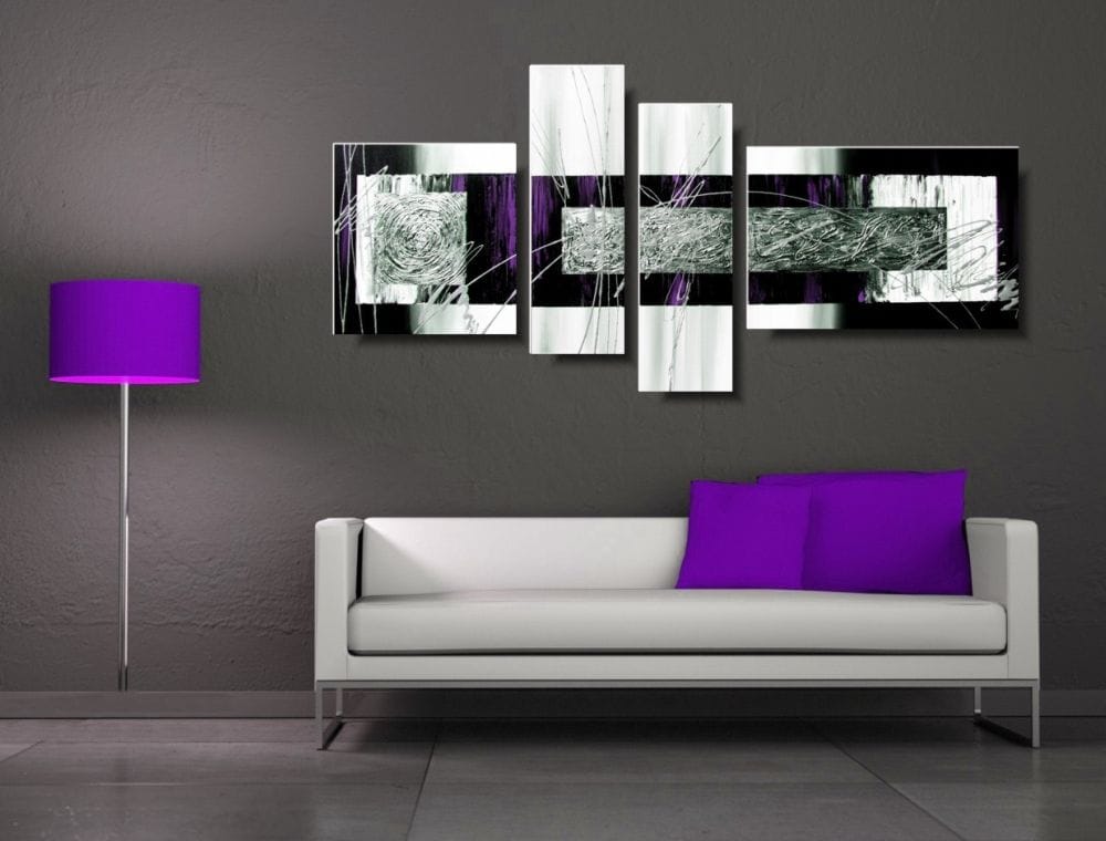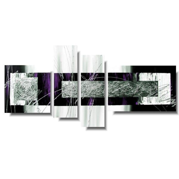 Obrazy nowoczesne delikatna fioletowa abstrakcja wieloczęściowe w modnej kolorystyce – fiolet, srebro, czerń, biel. Obraz dla mamy jest niekonwencjonalny pod względem formalnym jaki i warsztatowym. Do namalowania tego modnego obrazu użyto ciekawej palety barw, co daje efekt nowoczesnego designu. Obraz abstrakcyjny to elegancka dekoracja wnętrza – salonu, biura, sypialni, sklepu. Gdyby jednak zamarzyło się Państwu coś zupełnie odmiennego – malujemy także obrazy na zamówienie, portret na zamówienie, duża kolorowa abstrakcja na zamówienie, modny elegancki akt na zamówienie.
