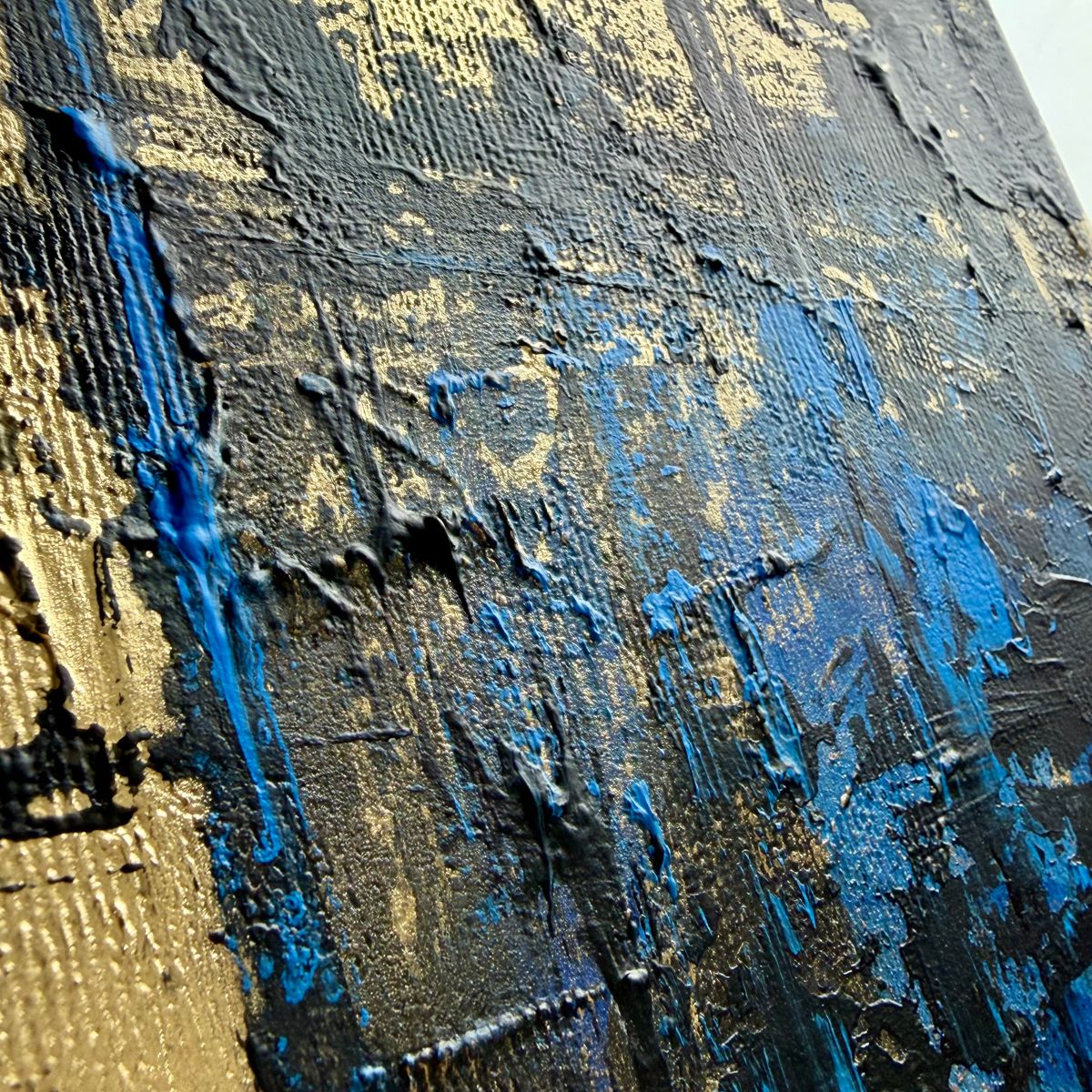 Kolorystyka obrazu: niebieski, błękitny, złoty, biały, czarny, szary,
