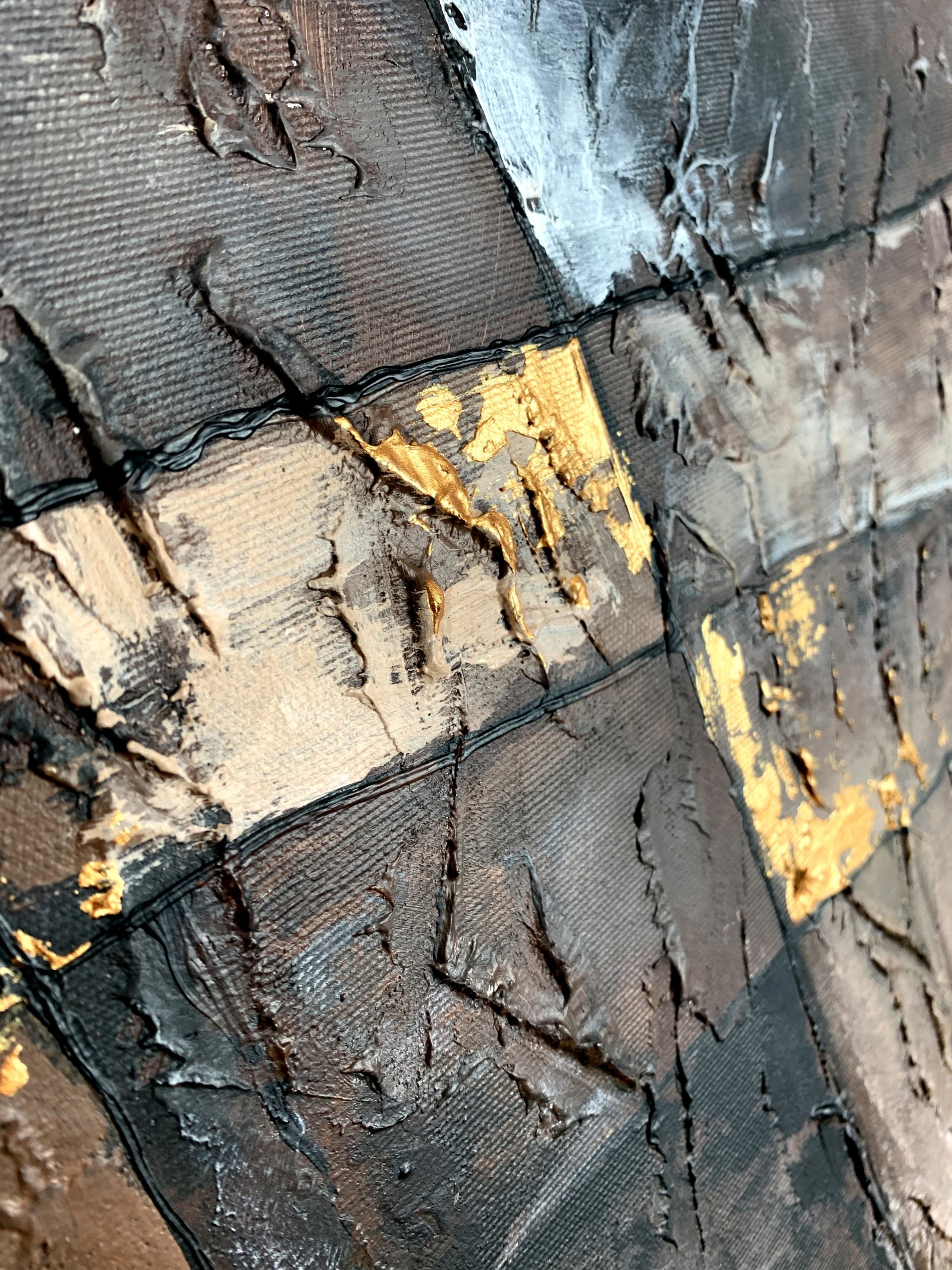 Kolorystyka obrazu: brązowy, wenge, beżowy, złoty, szary, biały, czarny + złota przecierana rama (listwa szerokości 4cm i grubości 2,5cm)