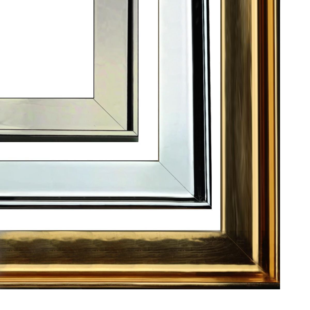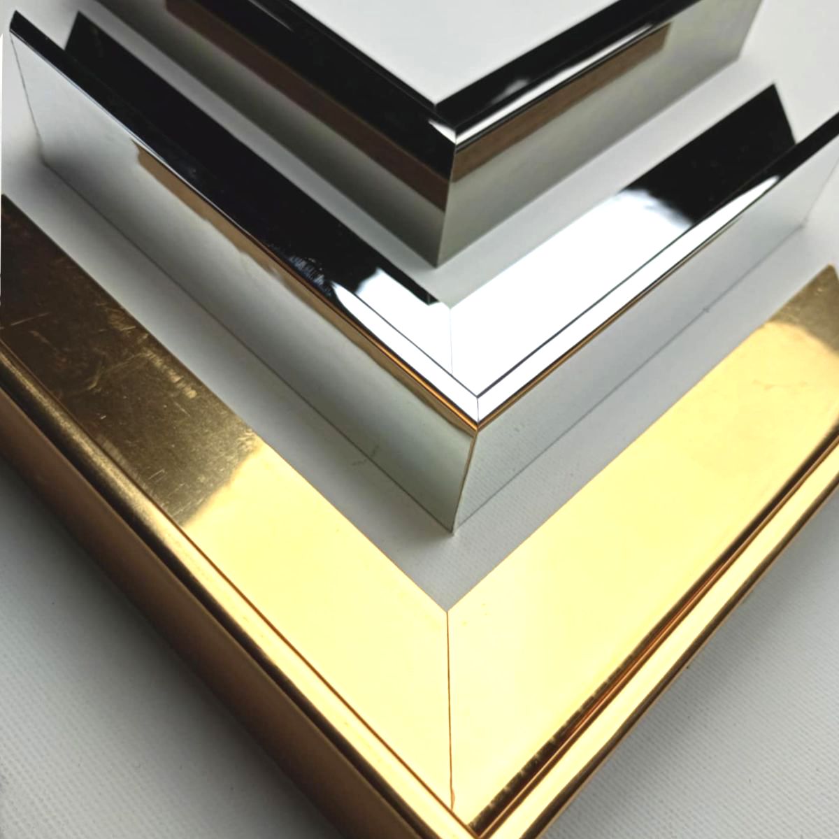 Rama american box do obrazu (AP3)– Nowoczesna rama pudełkowa drewniana w kolorze chrom, srebrnym i złotym, lustrzana.