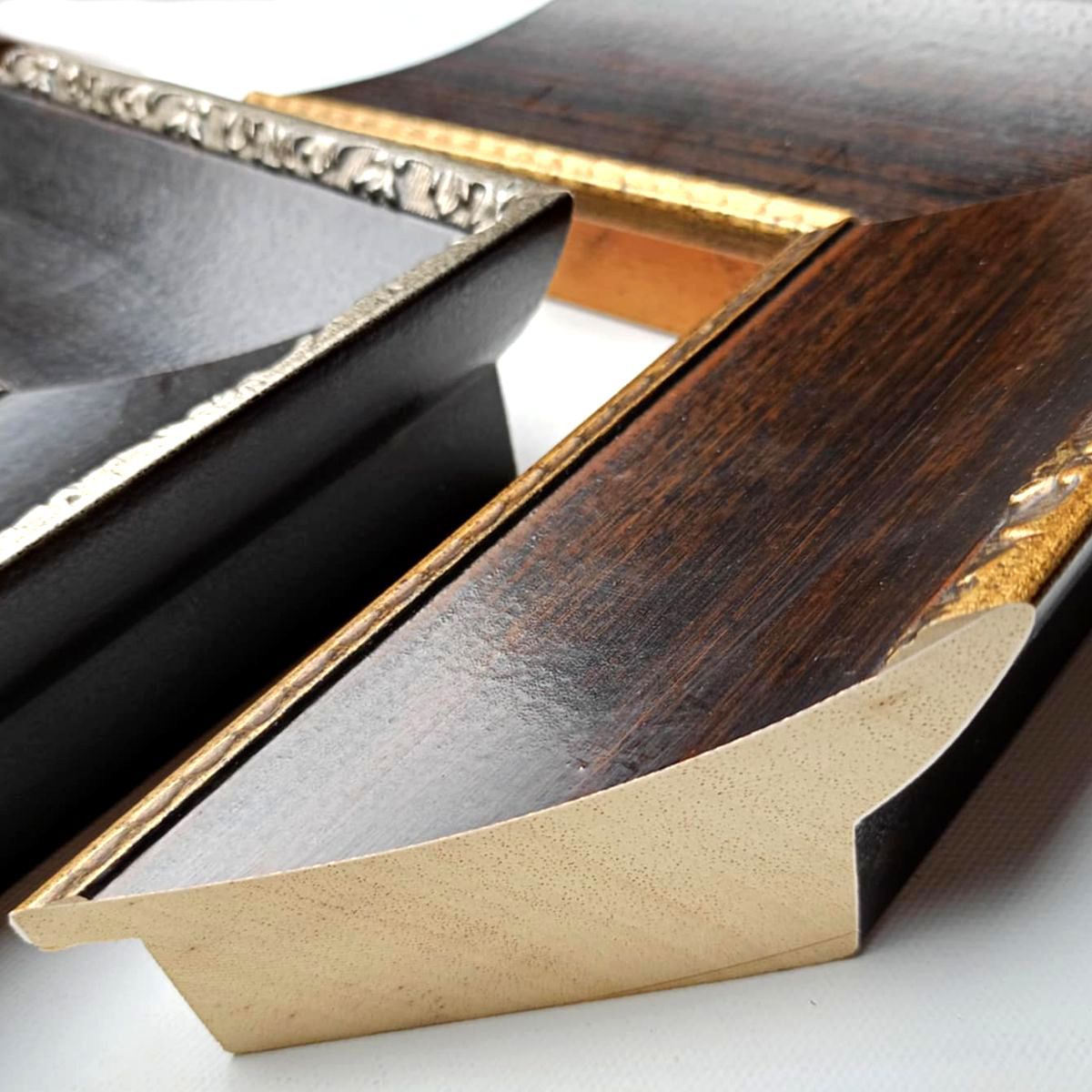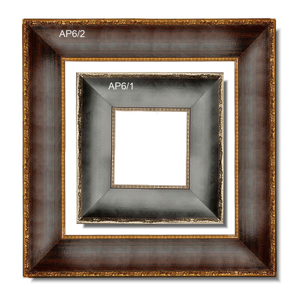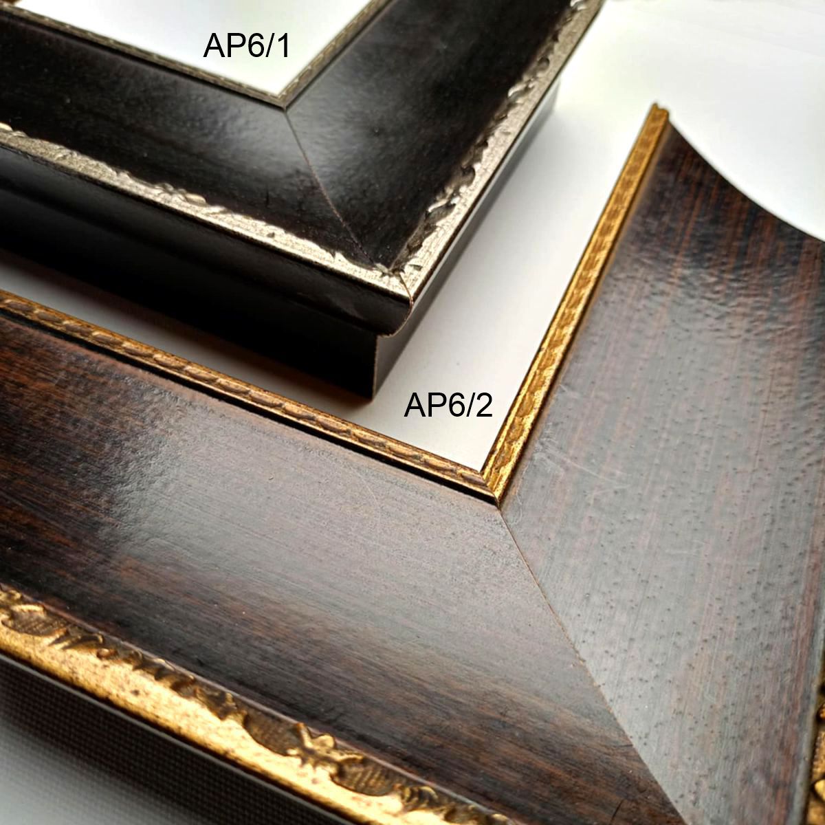 Szeroka rama do obrazu (AP6)–  Rama klasyczna delikatnym wąskim rzeźbieniem w kolorze czarnym ze srebrem lub brązowym ze złotem. Szeroka rama niższa wewnątrz i wyższa na krawędziach.