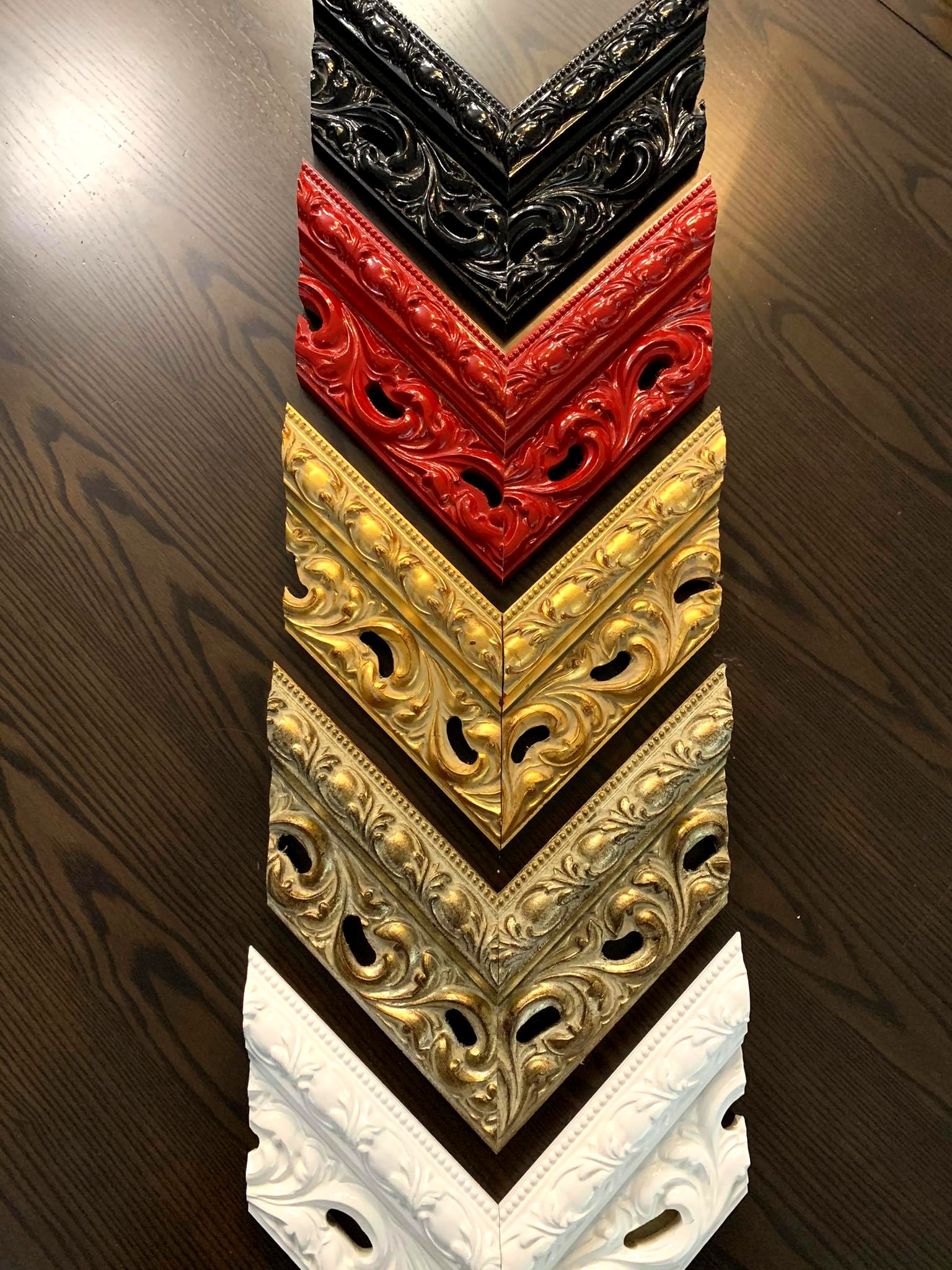 Złota bielona rama do obrazu rzeźbiony ornament szlagmetal klasyka (SA02)– Doskonała do klasycznych obrazów jednocześnie idealna do nowoczesnych wnętrz i współczesnych obrazów.